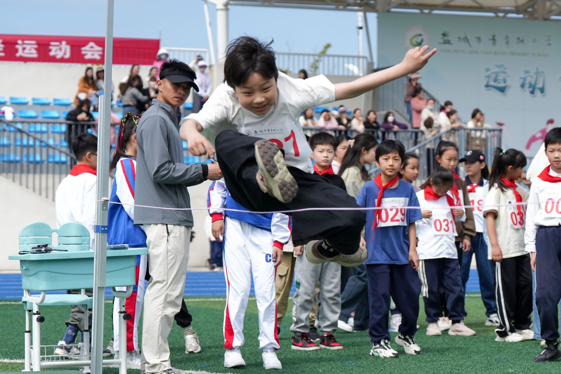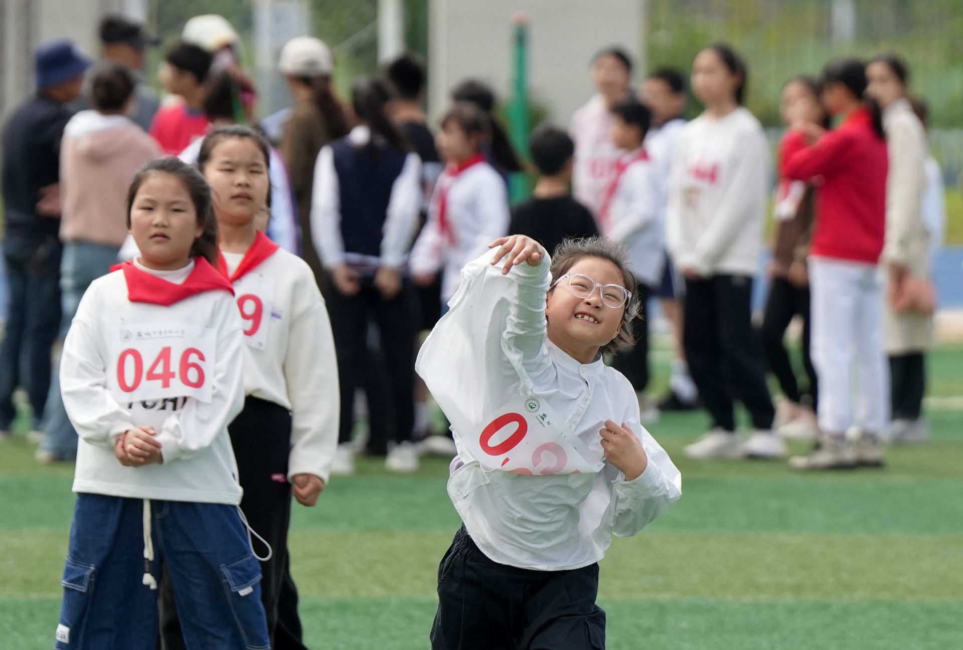 4月29日,市青年路小学的学生兴致勃勃参加了主题为“运动青禾 和美成长”的学校第二届田径运动会。盐阜大众报报业集团融媒体记者 周晨阳 摄(一审:王心怡丨二审:李艳丨三审:张伟伟)