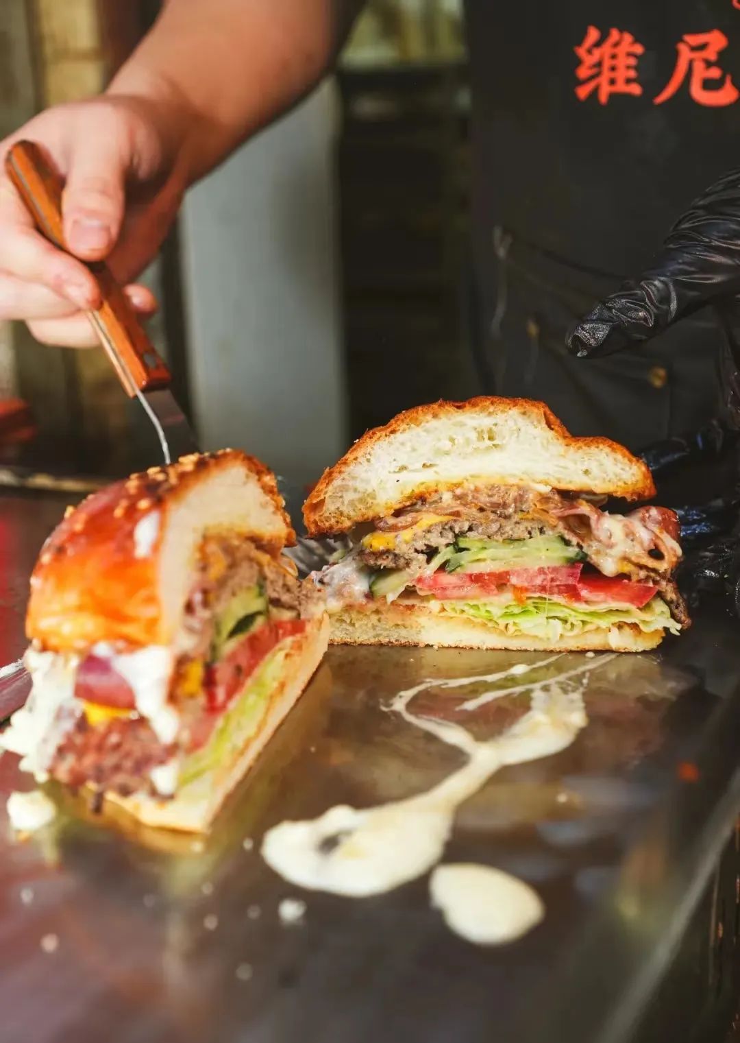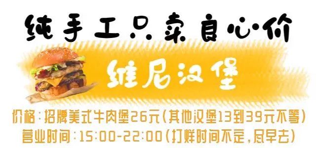 这家店的手工汉堡价格最低13元一个,招牌美式牛肉堡26元,性价比极高。下午三点开始营业,每天限量供应,卖完收摊。