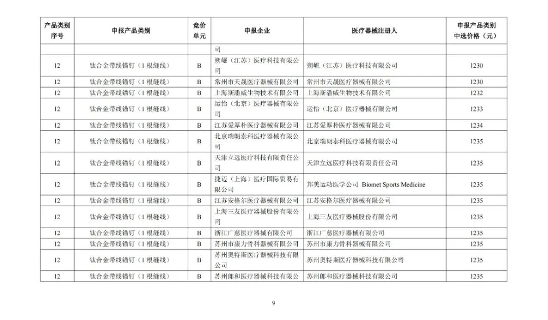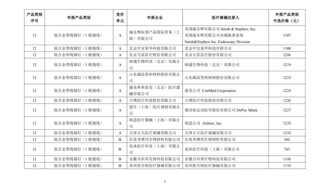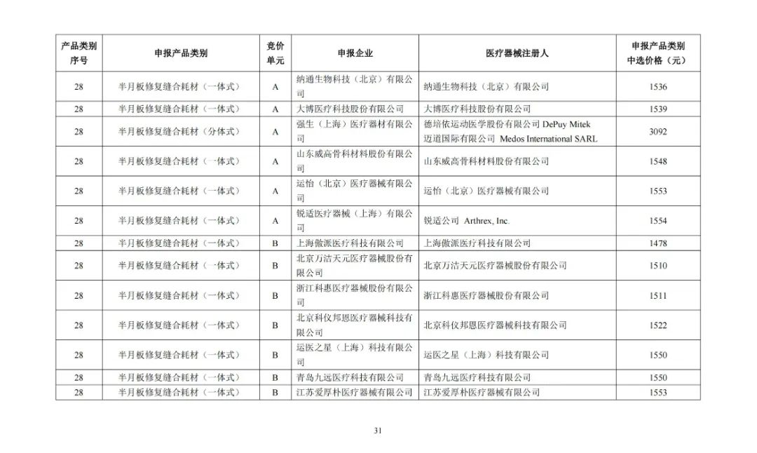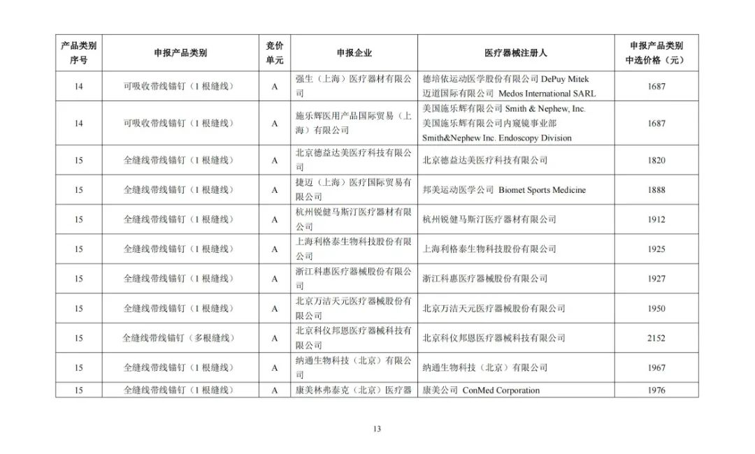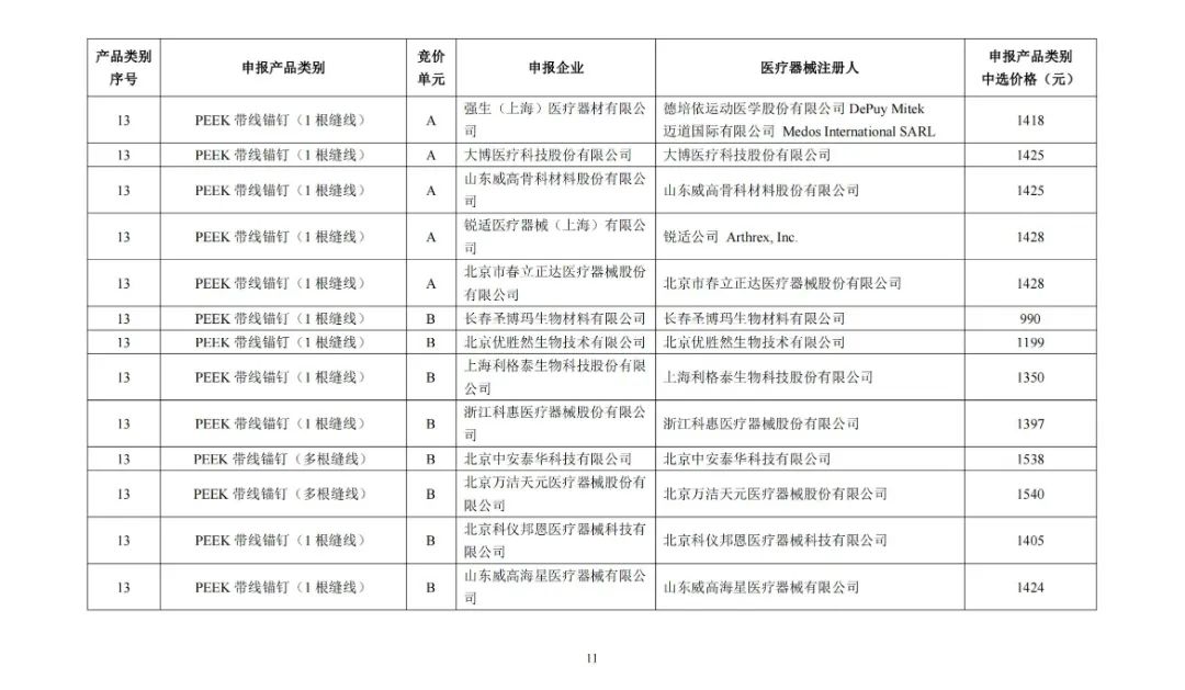 及运动医学类医用耗材