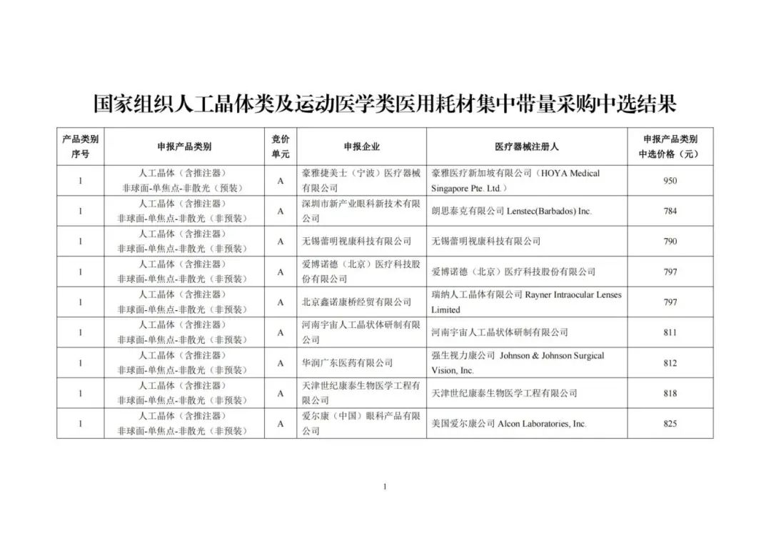其中,人工晶体类医用耗材平均降价60%;人工合成骨等运动医学类耗材平均降价74%。本次集采结果广泛惠及白内障患者及运动损伤和韧带修复患者。如河南宇宙人工晶状体研制有限公司折叠式人工晶状体,集采前价格2450元,集采中选价格811元,降幅66.9%;山东威高骨科材料股份有限公司运动医学类耗材半月板缝合钉,集采前价格15000元,集采中选价格1548元,降幅近90%,有效减轻了群众看病负担。我市将继续推进