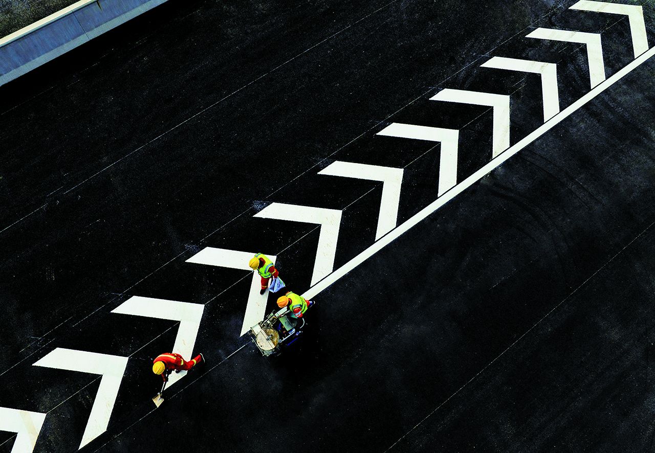 划线施工中。盐阜大众报报业集团融媒体通讯员 顾枫 摄(一审:严蔷梅丨二审:李艳丨三审:张伟伟)