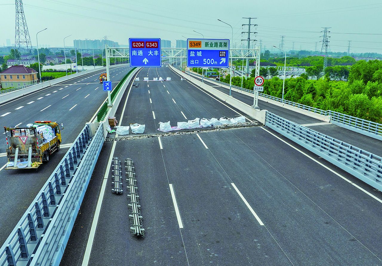 正在进行伸缩缝施工的古河枢纽主线。盐阜大众报报业集团融媒体通讯员 顾枫 摄