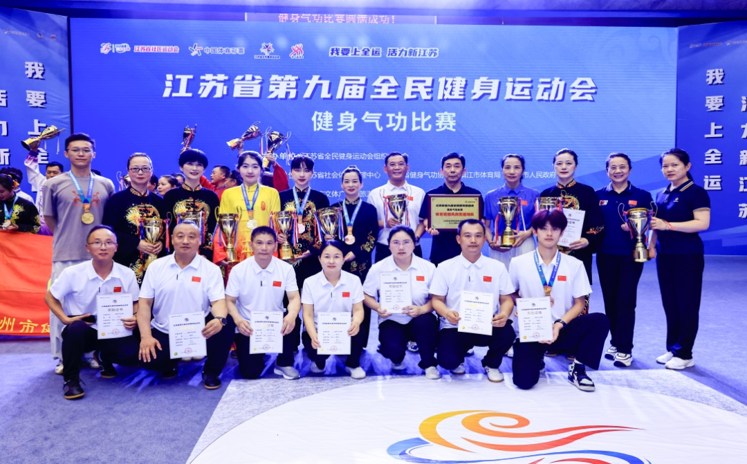 6月20日至23日,江苏省第九届全民健身运动会健身气功项目在镇江句容市举办,来自全省13支代表队220名领队、教练员、运动员参加比赛。
