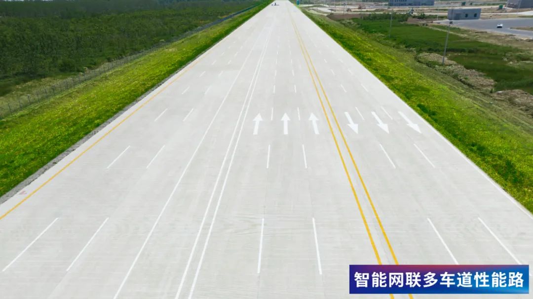 智能网联多车道性能路直线段长度达2100米,宽度24米,六车道,最高试验车速可达160km/h。该测试道路与智能网联高速环道组合后能够达到10个车道,技术指标处于国内领先、国际一流水平。