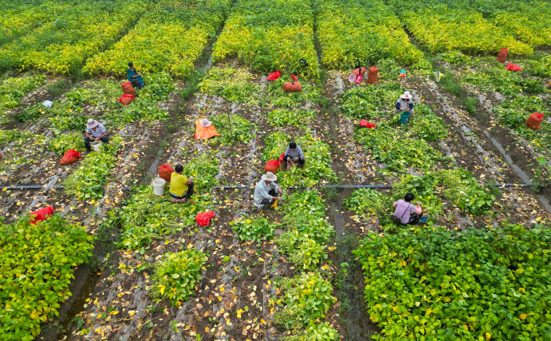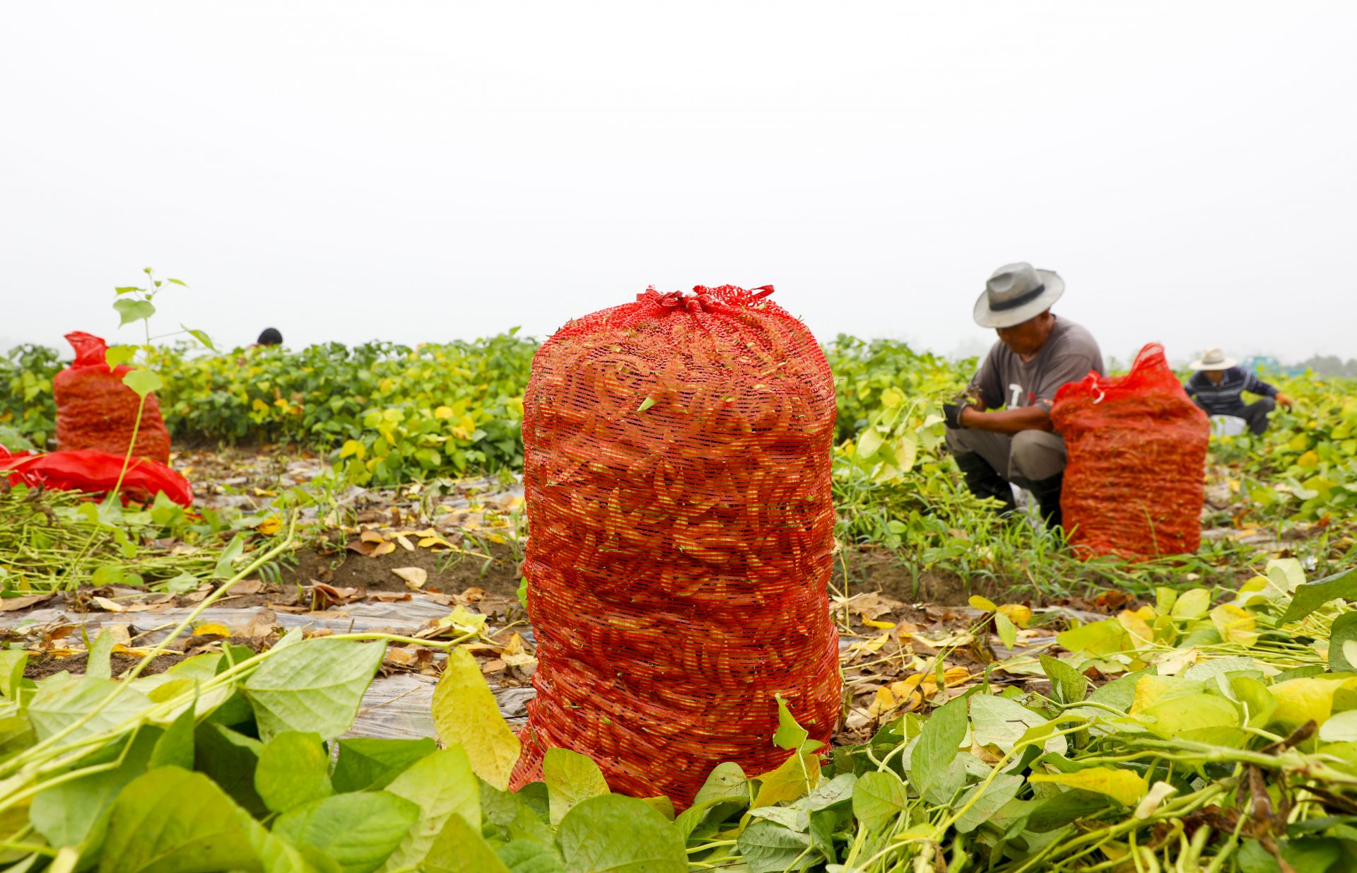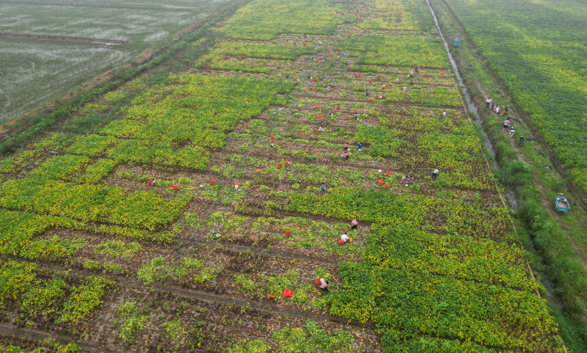 7月15日,在滨海县天场镇天场村种植基地,长势茂盛的毛豆叶铺满了一片片田垄,茂密的叶片下,一串串籽粒饱满的豆荚缀挂在枝蔓上。采摘、装袋、搬运、称重、装车……田间地头到处都是村民们忙碌的身影。天场镇天场村蔬菜种植基地采取“企业+农户”的运作模式,流转土地,发展订单种植,小小的毛豆变身成为增收致富的“金豆豆”。近年来,天场村积极调整农业产业结构,因地制宜大力发展青刀豆、毛豆种植,不断完善配套设施,提高规模化、标准化种植技术水平,为乡村振兴注入了新的活力,促进了农业增效,带动了农民增收。盐阜大众报报业集团融媒体记者 杨毅 通讯员 朱鹏程 刘朔池 摄