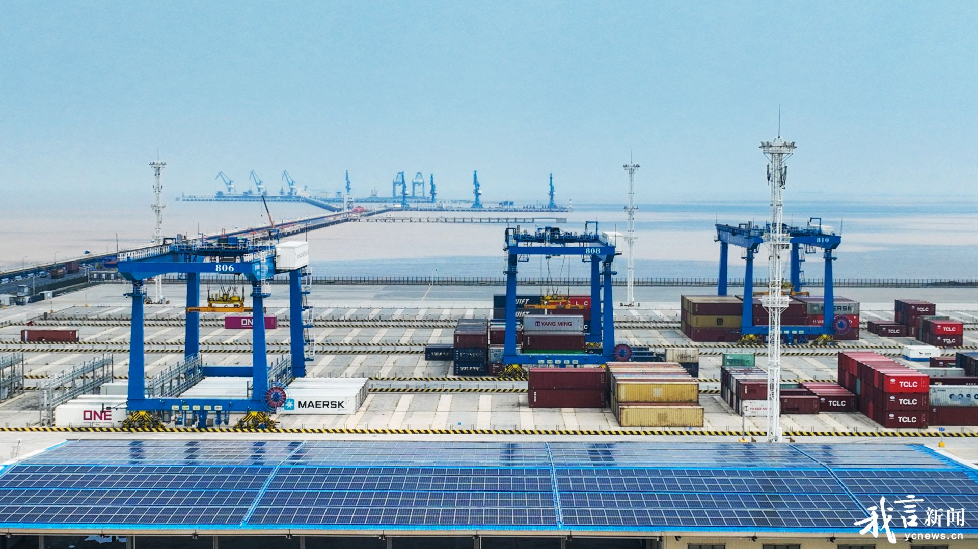 光伏并网、绿电入园。在大丰港零碳产业园区,绿电物理可溯源成为现实。园区将绿色交通、绿色建筑、绿色生活融入园区建设,构建新型零碳生态圈,同时建立可再生能源电力消纳机制,通过变电站、共享储能电站等,为入园企业提供可溯源、稳定消纳的绿电。走进盐城港大丰港区的自动化“零碳堆厂”,光伏太阳能板铺满屋顶,屋顶光伏将太阳能转变为源源不断的电能。绿色转型钢铁企业——联鑫钢铁年回收利用副产煤气60亿立方,发电8亿千瓦时。图为盐城港大丰港区集装箱堆场。盐阜大众报报业集团融媒体记者 李思远 摄