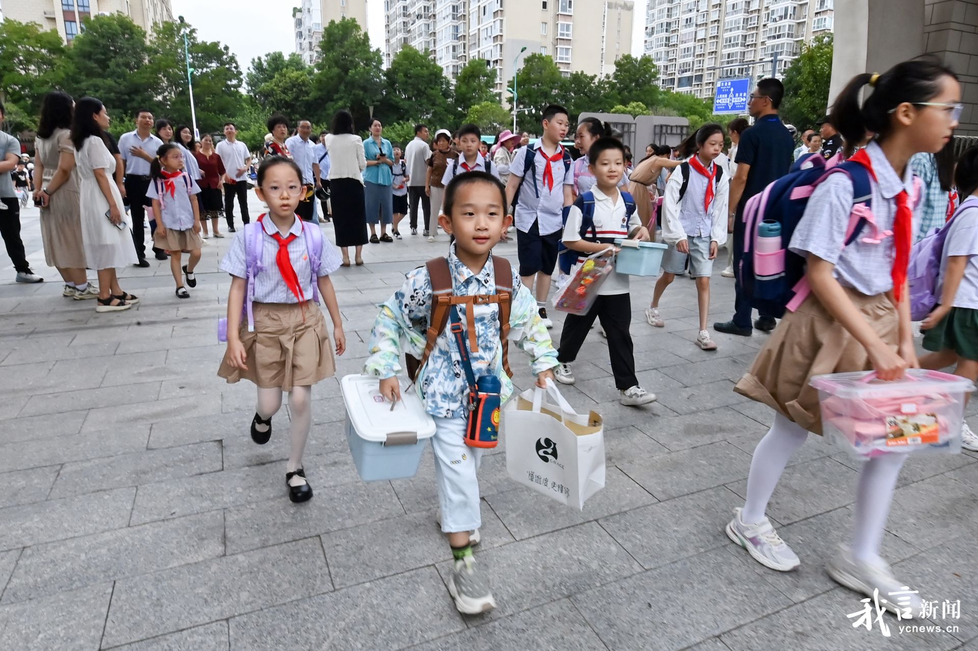 一年级新生迈进校园。盐阜大众报报业集团融媒体记者 郜野乔 王焱 摄