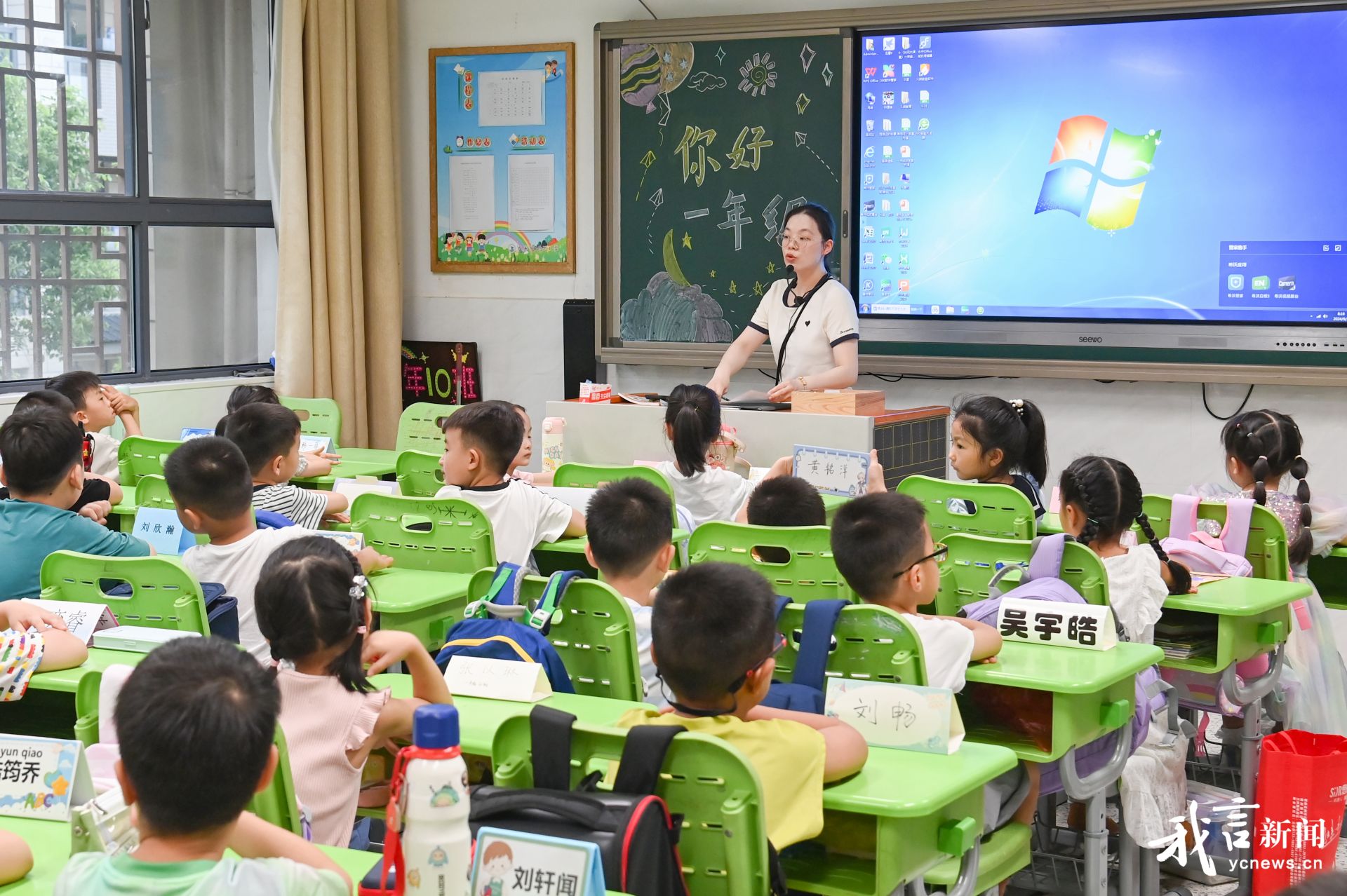 刚入学的一年级新生开始了他们的第一堂小学课。盐阜大众报报业集团融媒体记者 郜野乔 王焱 摄