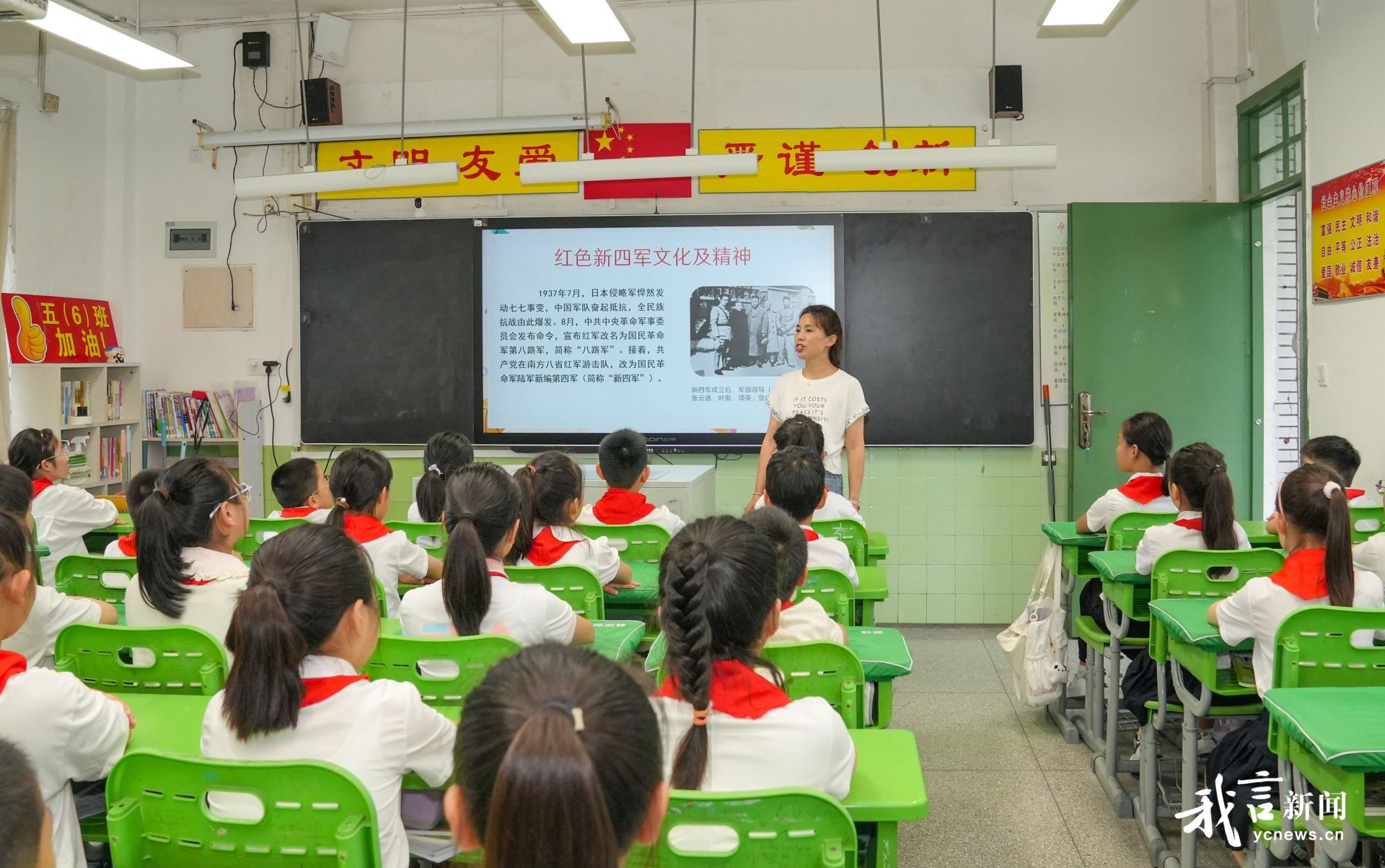 新四军纪念馆红色研学老师为解放路实验学校师生开展生动的爱国宣讲。盐阜大众报报业集团融媒体记者 郜野乔 王焱 摄