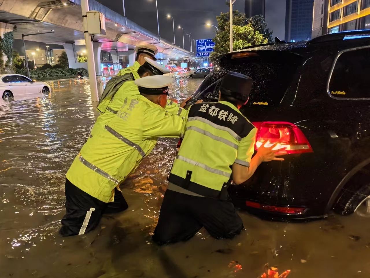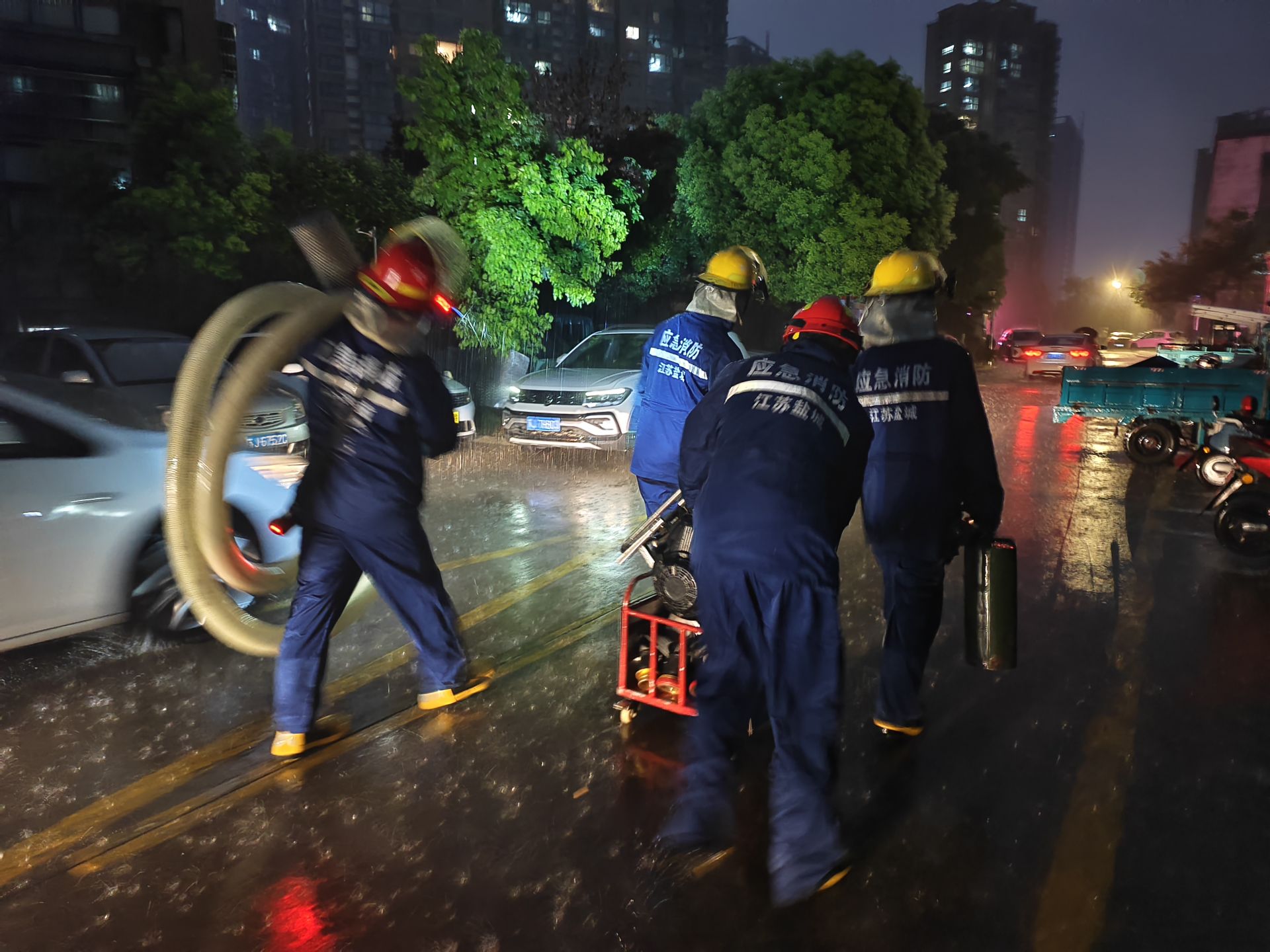 9月11日,盐城市区遭受强降雨,持续的降雨导致市区道路湿滑、积水严重,给群众出行带来极大的不便。公安、消防、水务、交通等多部门第一时间启动应急预案,迅速集结,通力协作,共筑安全防线。公安部门疏导交通,确保救援通道畅通;消防官兵冲锋在前,开展紧急救援;水务部门全力排水,减轻内涝;交通部门实时发布路况,引导市民安全出行。(盐城市消防救援支队、盐城市公安供图)盐阜大众报报业集团融媒体记者 李思远 王焱 摄 一审:王艺蓉 李雅璐(实习)丨二审:李艳丨三审:张伟伟