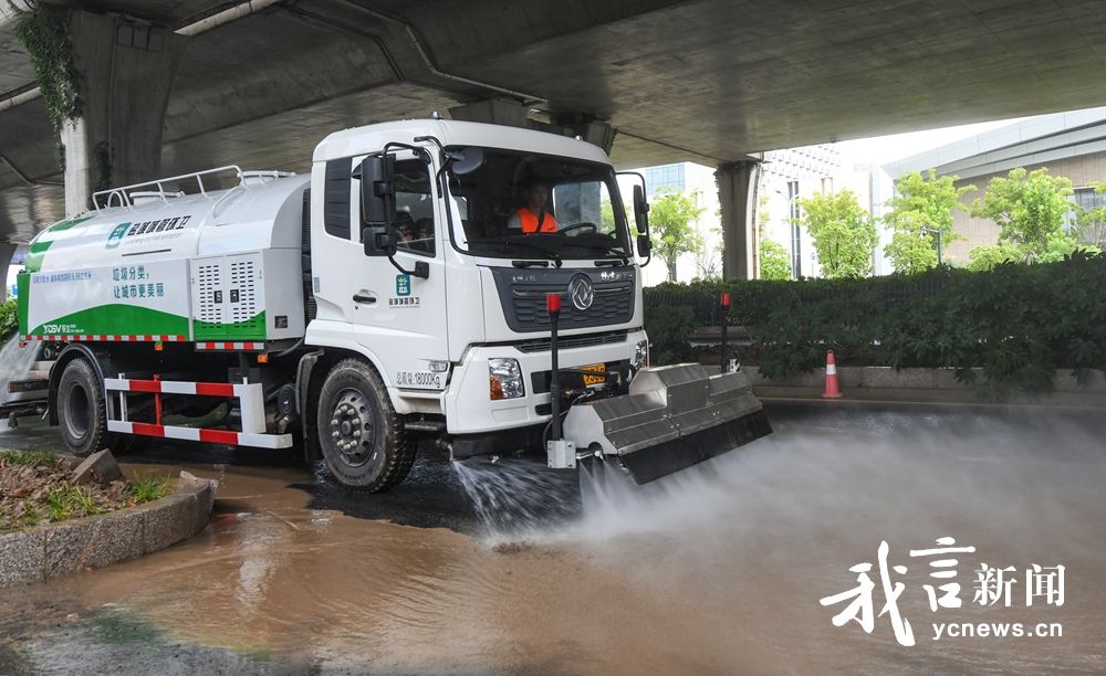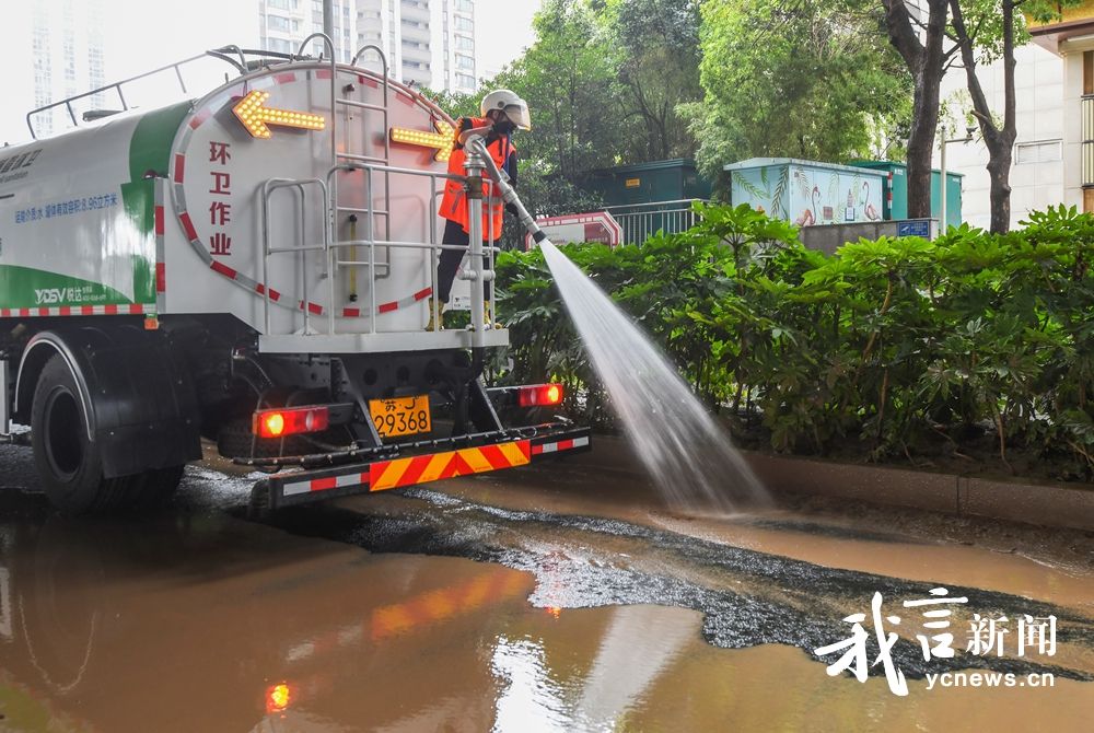 9月12日,市环卫针对市区主干道采取“机械冲洗+人工保洁”作业模式,出动21辆洗扫车、11辆高压冲洗车、12辆小型冲洗车、近600名环卫工人对路面进行全面冲洗和扫洗作业。针对范公路、西环路等污染较为严重的路段,调集作业人员和车辆,重点对排水口杂物、树枝等进行清理,用铁锹铲除路面淤泥,集中冲洗路面污染,力争最短时间内恢复道路洁净畅通。通讯员 王文虎 邵小军 盐阜大众报报业集团融媒体记者 王焱 摄
