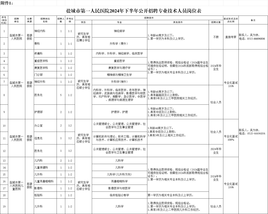 为进一步加强卫生人才队伍建设,更好地选拔优秀适岗人才,优化人员结构,盐城市第一人民医院面向社会公开招聘专业技术人员26名。