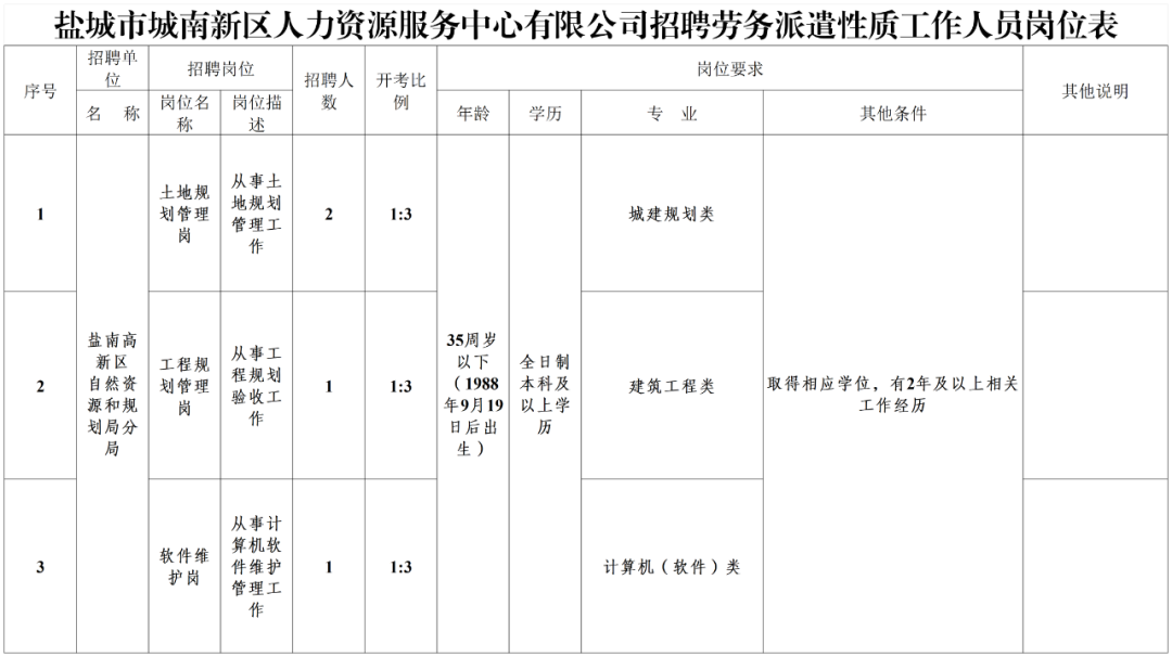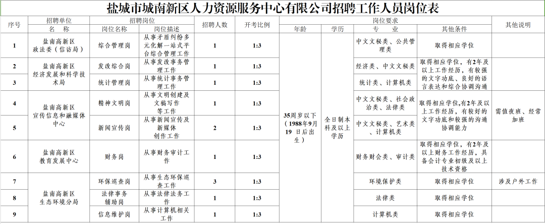 盐城市城南新区人力资源服务中心有限公司招聘工作人员公告(二):