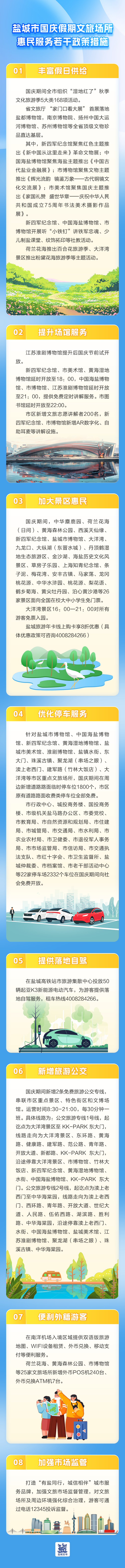 国庆假期临近,为更好发挥全市文旅场所“可感可及、 立竿见影”惠民服务功能,盐城推出了一系列惠民服务政策措施,进一步激发消费潜力。