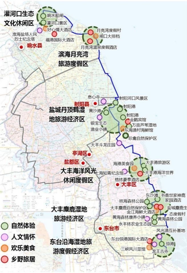 旅游公路1号线贯穿了盐城市“3+2+5”核心生态旅游体系,即大丰中华麋鹿园(5A)、亭湖丹顶鹤旅游景区(4A)、东台条子泥景区(4A)三大世遗核心景区,大丰斗龙港省级旅游度假区和东台黄海森林省级旅游度假区两大度假功能区,弶港、斗龙港、黄沙港、新洋港、翻身河渔港五个渔港风情小镇。这条“世界自然遗产黄(渤)海候鸟栖息地探秘之路”,让旅行不再只是从一个景点到另一个景点的跳跃,而是一场心灵与自然的深度对话。