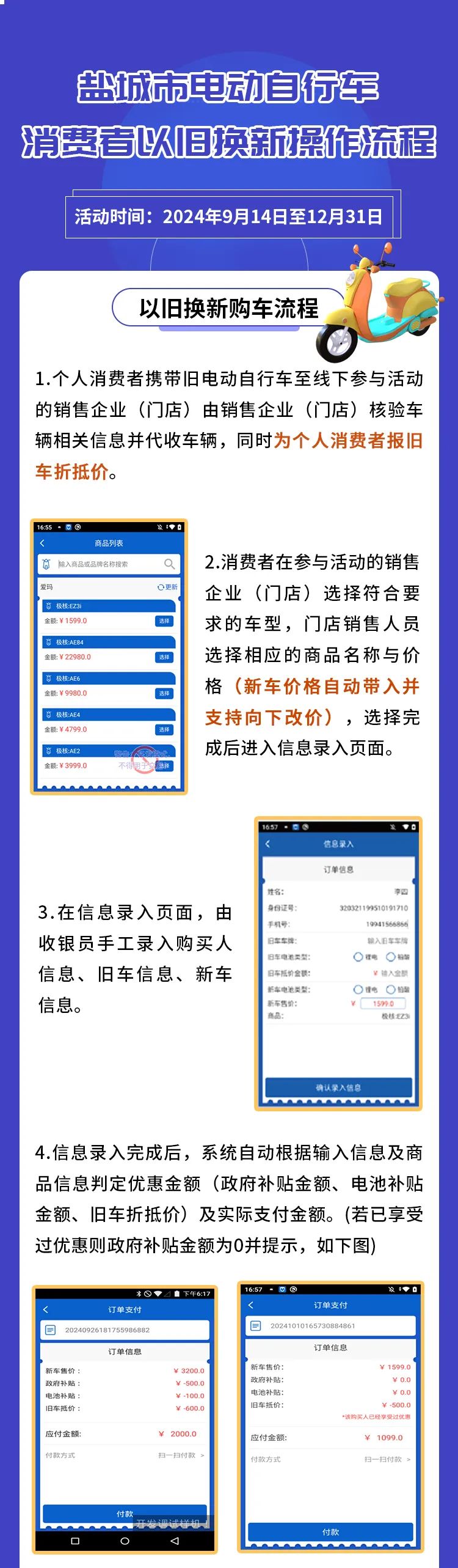 交回老旧电动车(整车,含蓄电池),并在盐城参与活动的销售门店处换购符合国家标准及经强制性产品认证的电动自行车新车的个人消费者。