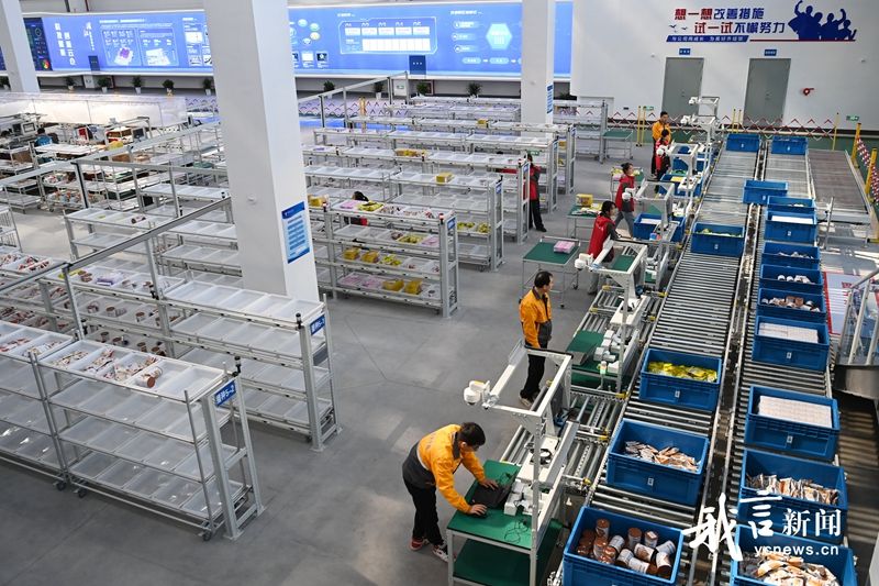 随着“双11”购物狂欢节的到来,响水县灌江智慧仓配中心呈现一派繁忙的景象。自动化设备高效运转,工作人员紧张而有序地忙碌着,快递单量激增,包裹被分拣、打包、装车,运往消费者的手中。据悉,该项目由响水县灌江控股集团有限公司和江苏智秀电商科技有限公司合资建设,计划总投资5亿元,占地面积100亩,总建筑面积3.5万平方米,新建2万平方米的灌江智慧云仓、1.5万平方米的灌江城市集配中心,每日可实现快递单量超20万件。盐阜大众报报业集团融媒体记者 李思远 摄