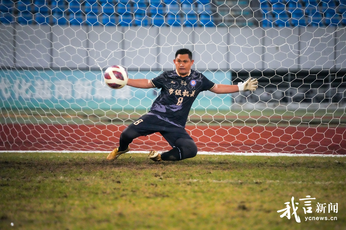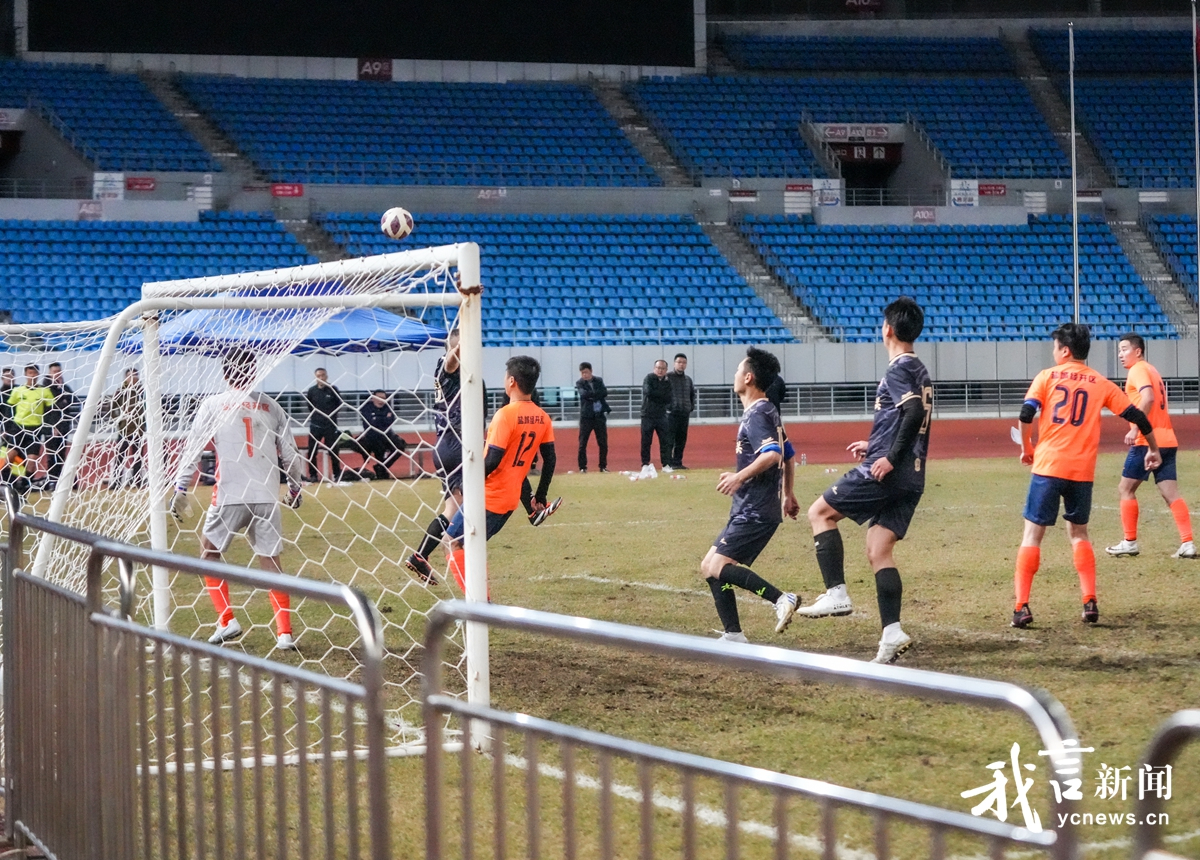 11月17日晚,由盐城市委市级机关工委、盐阜大众报报业集团、盐城市体育局、盐城团市委共同主办的盐城市第十届机关足球邀请赛在盐城奥体中心圆满落幕。图为精彩射门。