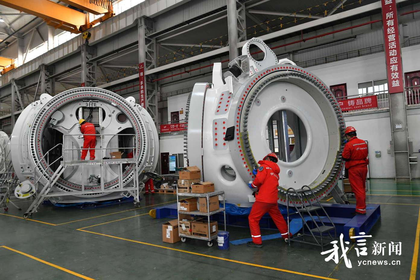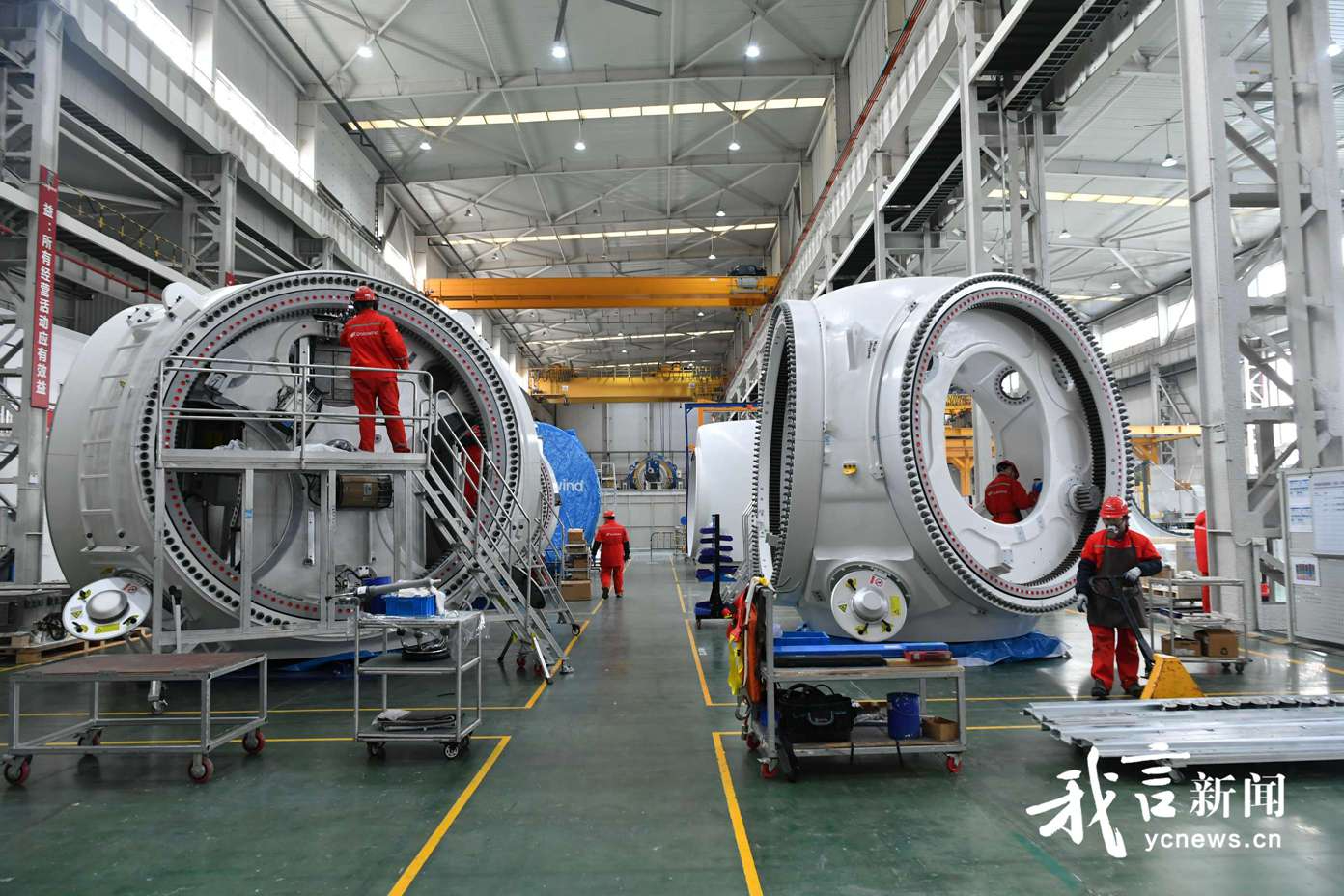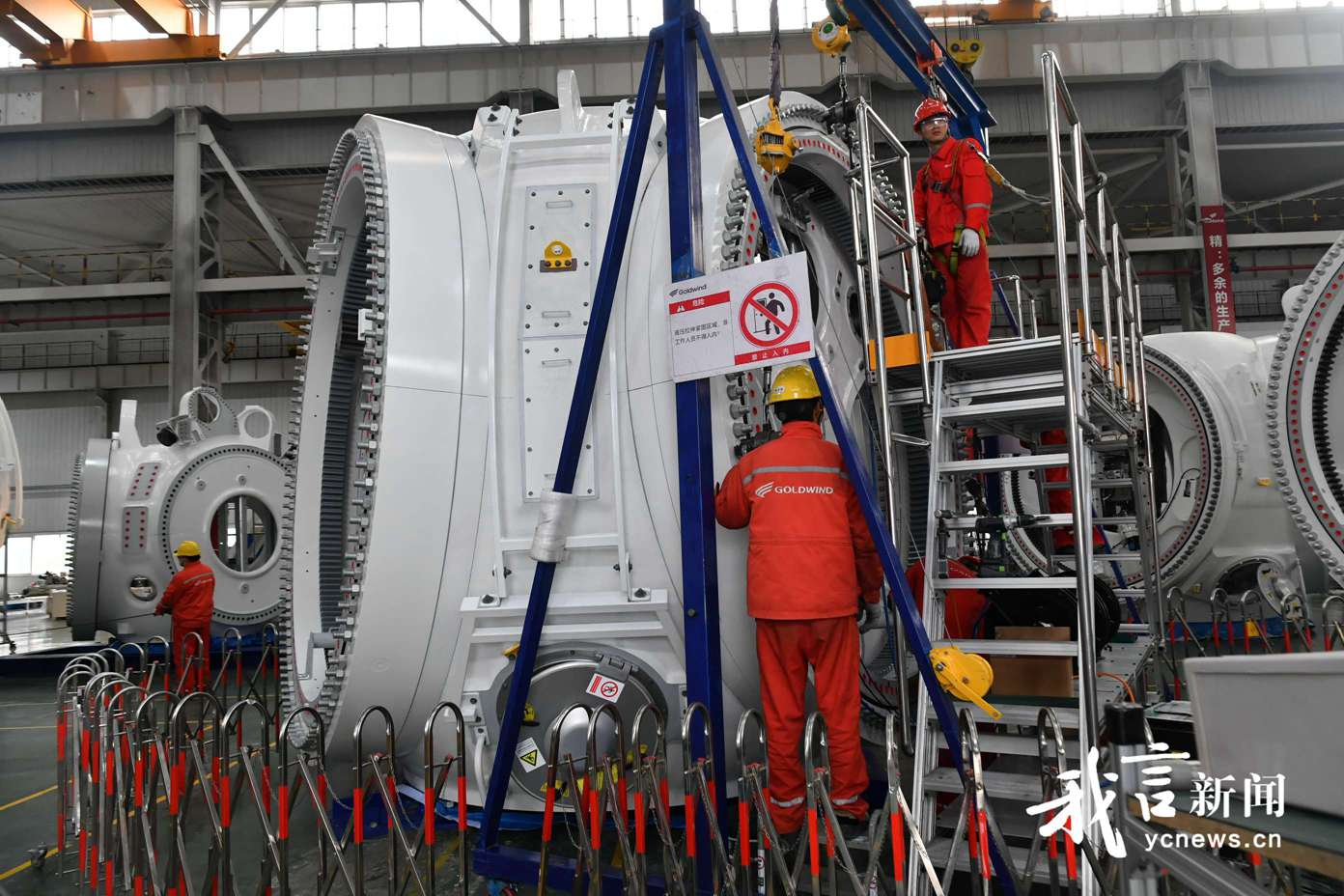 12月10日,在江苏金风科技有限公司生产车间,技术人员正加紧生产。