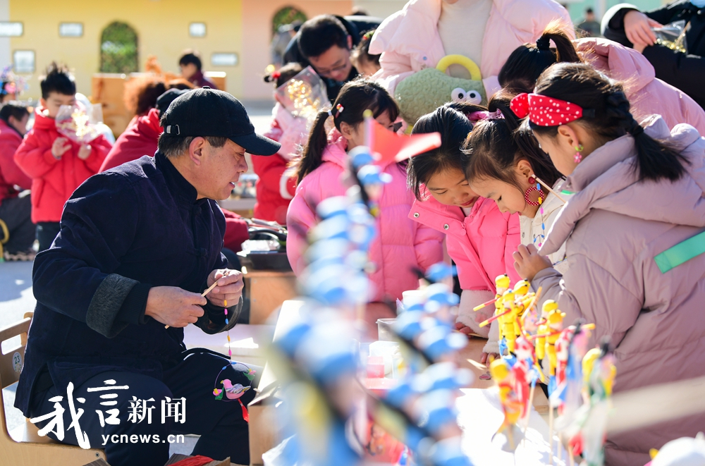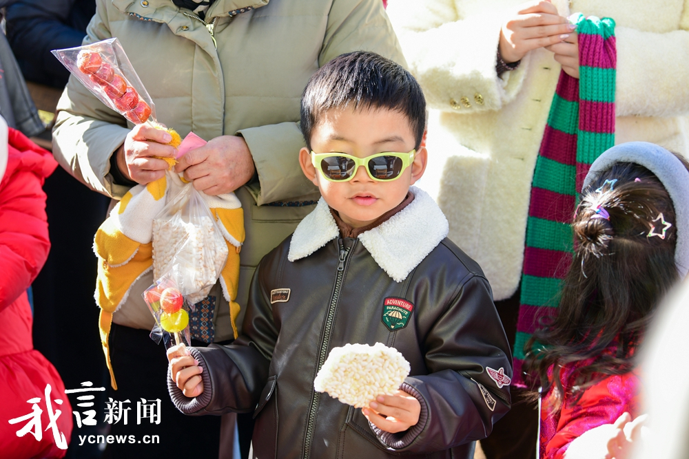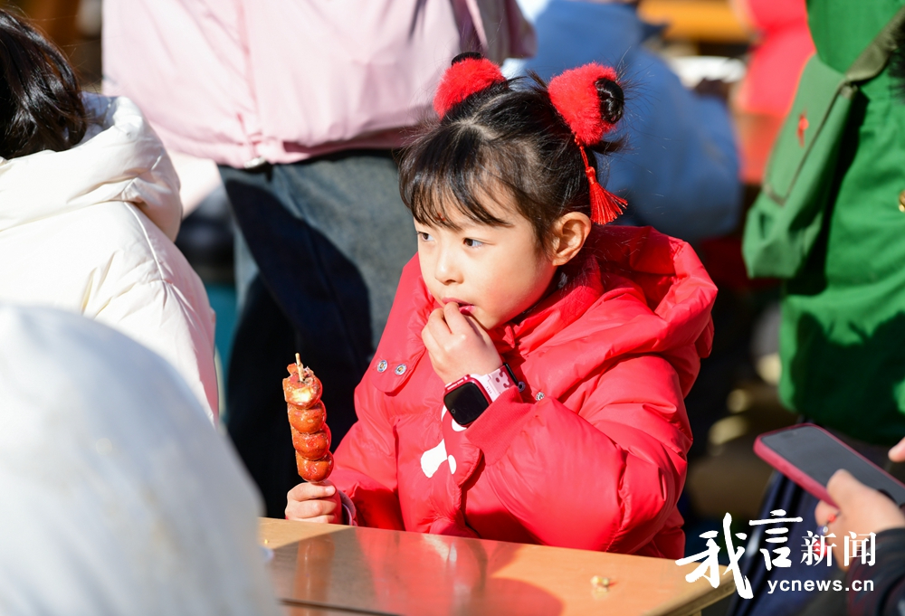 活动中,大家有的受邀展示怀旧舞蹈,有的在游戏区体验扔沙包、弹弹珠、跳皮筋等项目,在小卖部品尝童年零食、藕饼、油端子,还在手工区参与画花脸、拓印年画等。