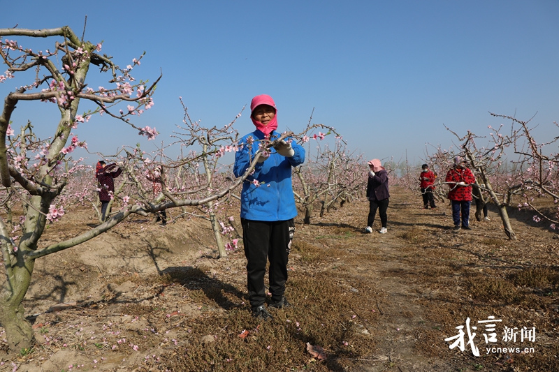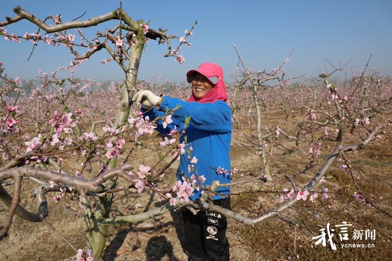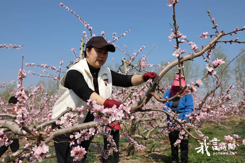 桃花枝头俏,果农春管忙