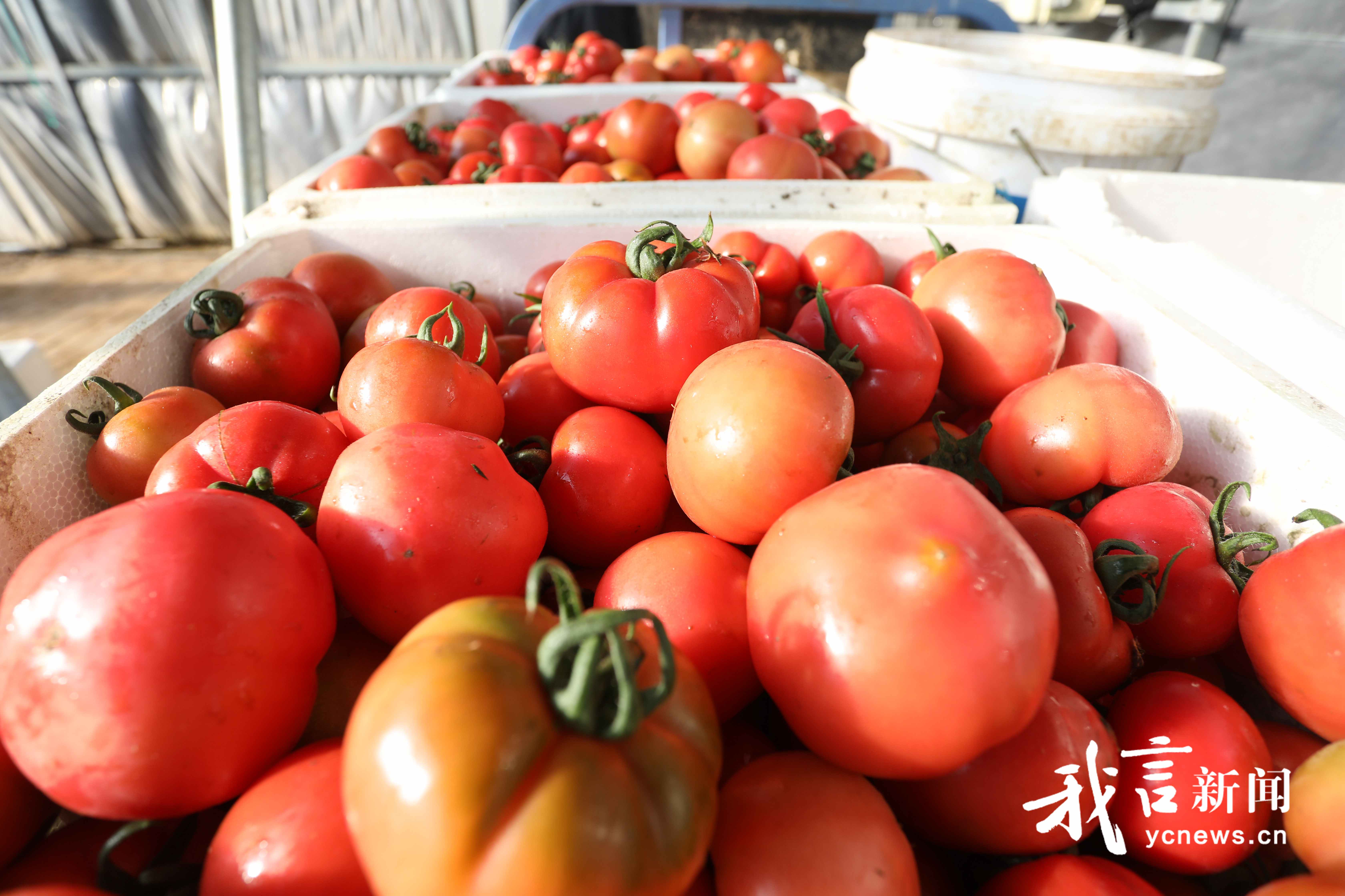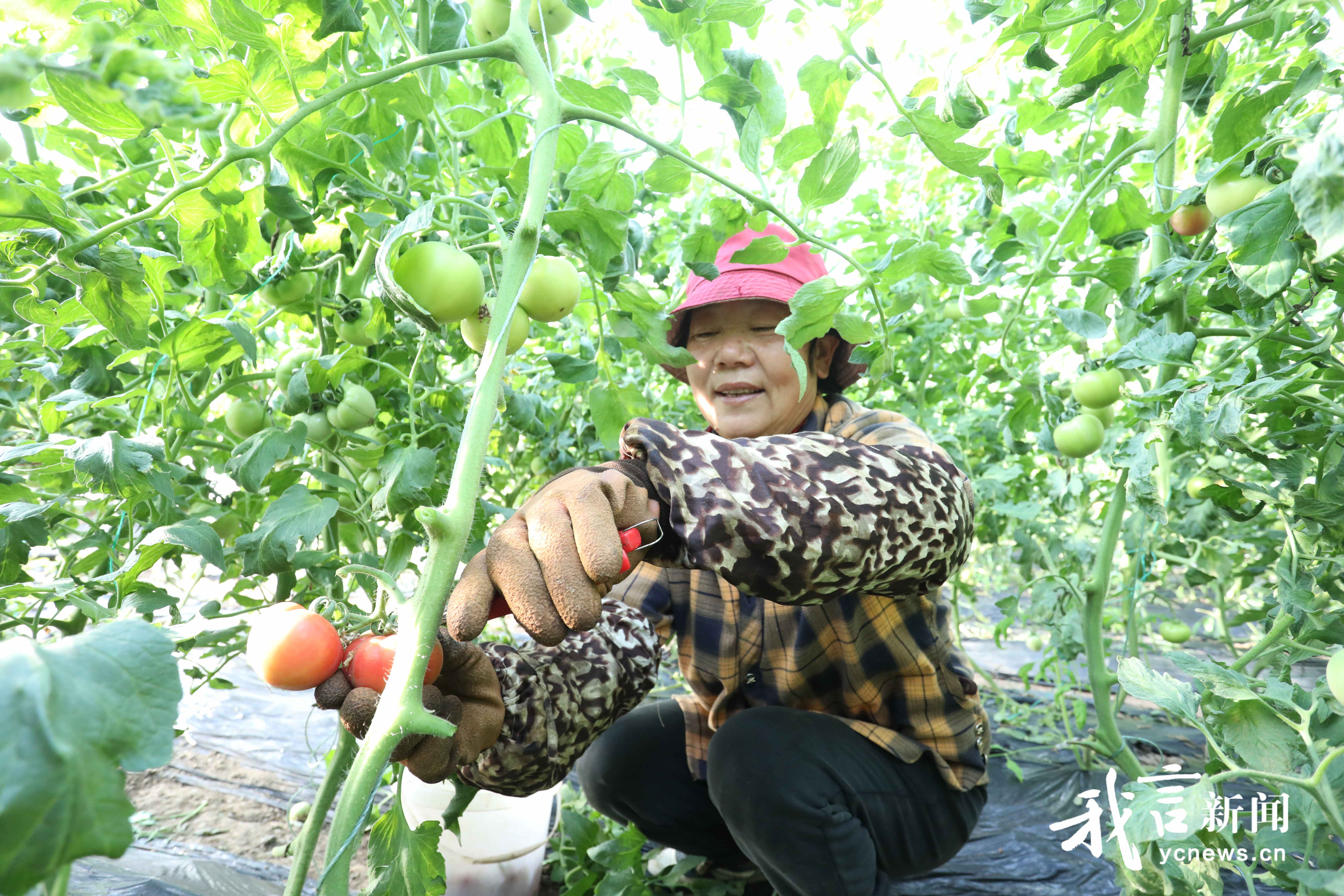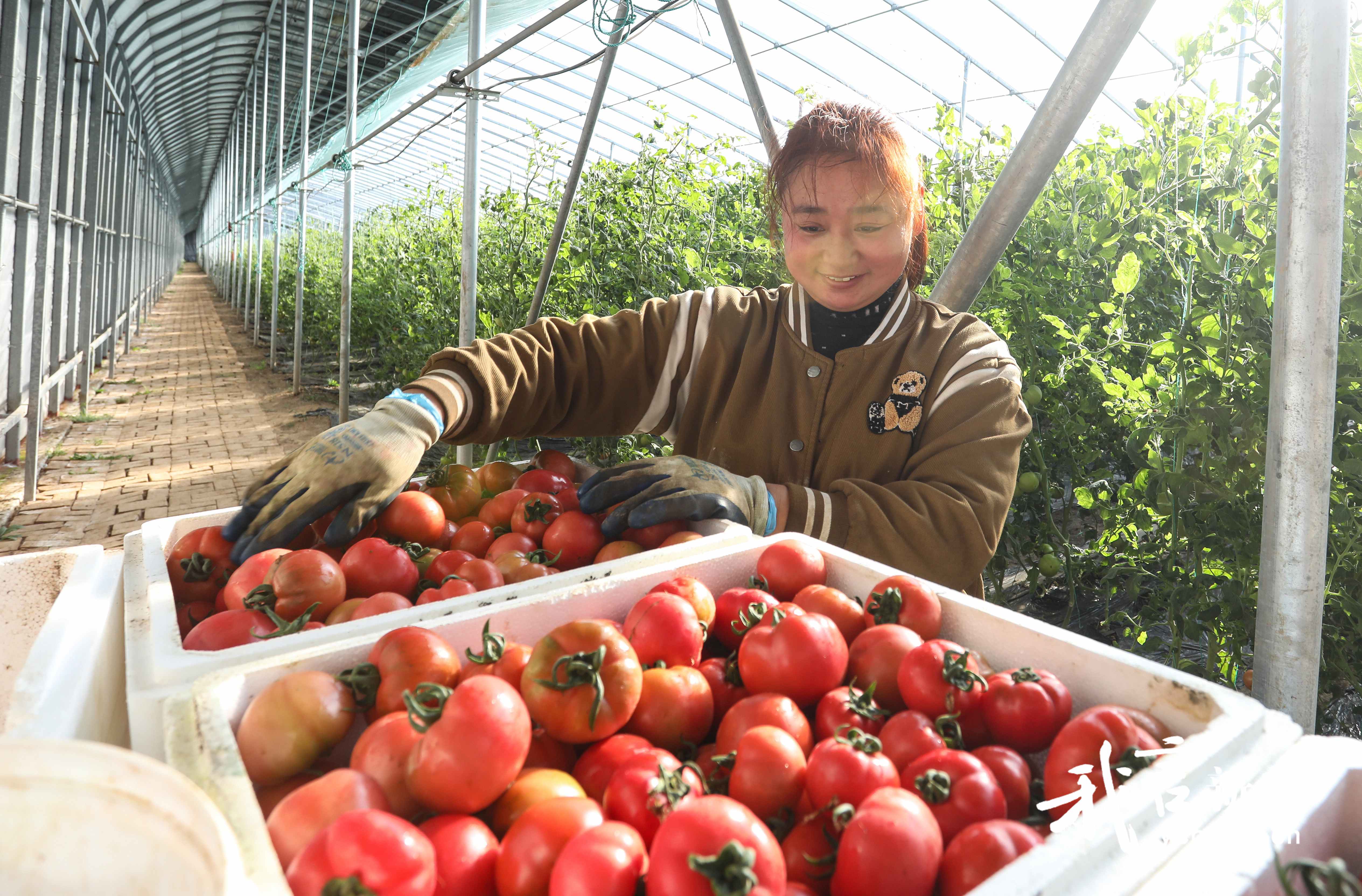 仲春时节,瑞杰农业发展公司大棚种植基地内的番茄迎来成熟期,工人们加紧采摘忙着上市销售,抢占市场。