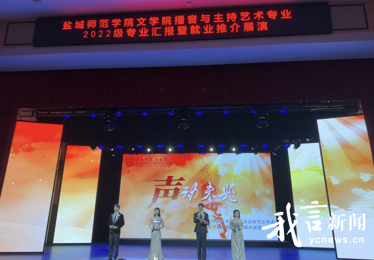 6月13日15:00,盐城师范学院文学院2022级播音与主持艺术专业汇报暨就业推介展演活动在盐城市文化馆精彩上演。盐城师范学院党委常委、副校长庞波,盐城广播电视总台党委书记、台长,盐城市政协文化文史和学习委员会主任戴为洋,盐城市文化馆党支部书记、馆长杨莺等领导和嘉宾出席。盐城各区县融媒体中心负责人,文化传媒企业代表,校党委宣传部、党委学生工作部、教务处、评估处、国际合作与合作交流处负责同志,文学院党政班子全体成员和师生代表齐聚现场,共同见证这场集专业展示与就业推介于一体的盛会。