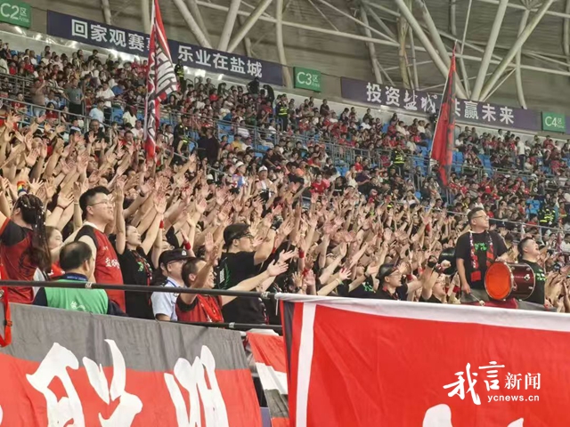 当盐城队球员面向那片始终坚守的球迷方阵深深鞠躬,一瞬间泪水打湿很多人的双眼。