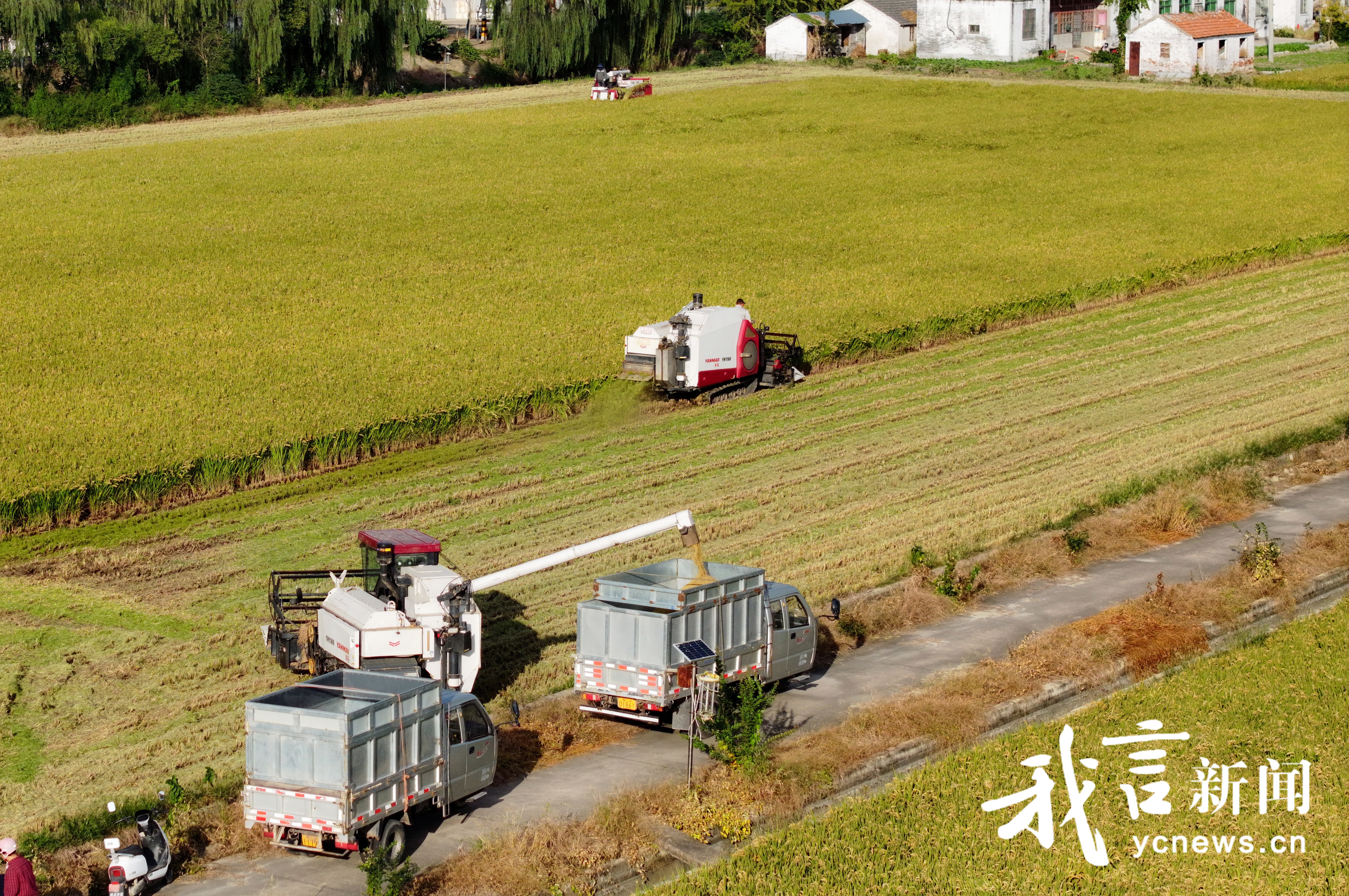 10月23日下午,位于盐都区大冈镇的扬帆家庭农场289亩水稻开始收割。近期天气晴好,有利于水稻后期成熟与收割工作的开展。当天,盐都区45.91万亩的水稻开始全面收割。