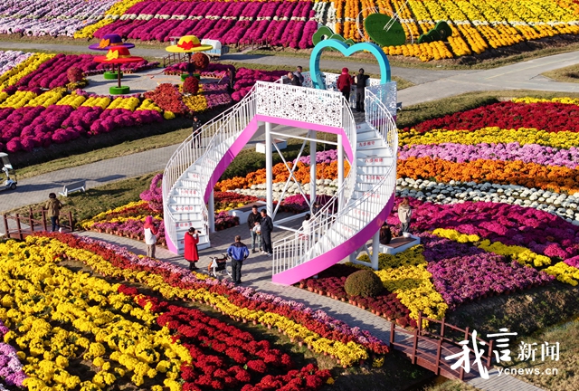 11月11日,游客来到位于射阳县洋马镇的江苏鹤乡菊海现代农业产业园赏花。鹤乡菊海核心区面积达2500亩,种植近1300种菊花,形成壮观的菊海景观,每到花期,色彩斑斓的菊花竞相开放,吸引大量游客前来观赏。
