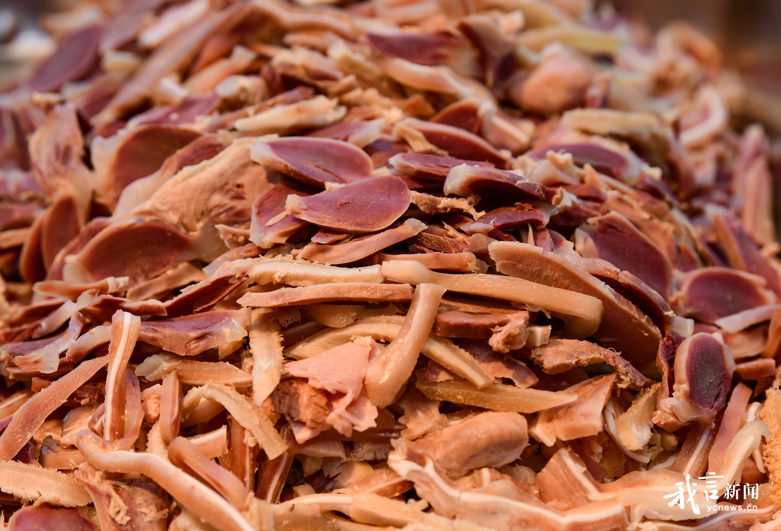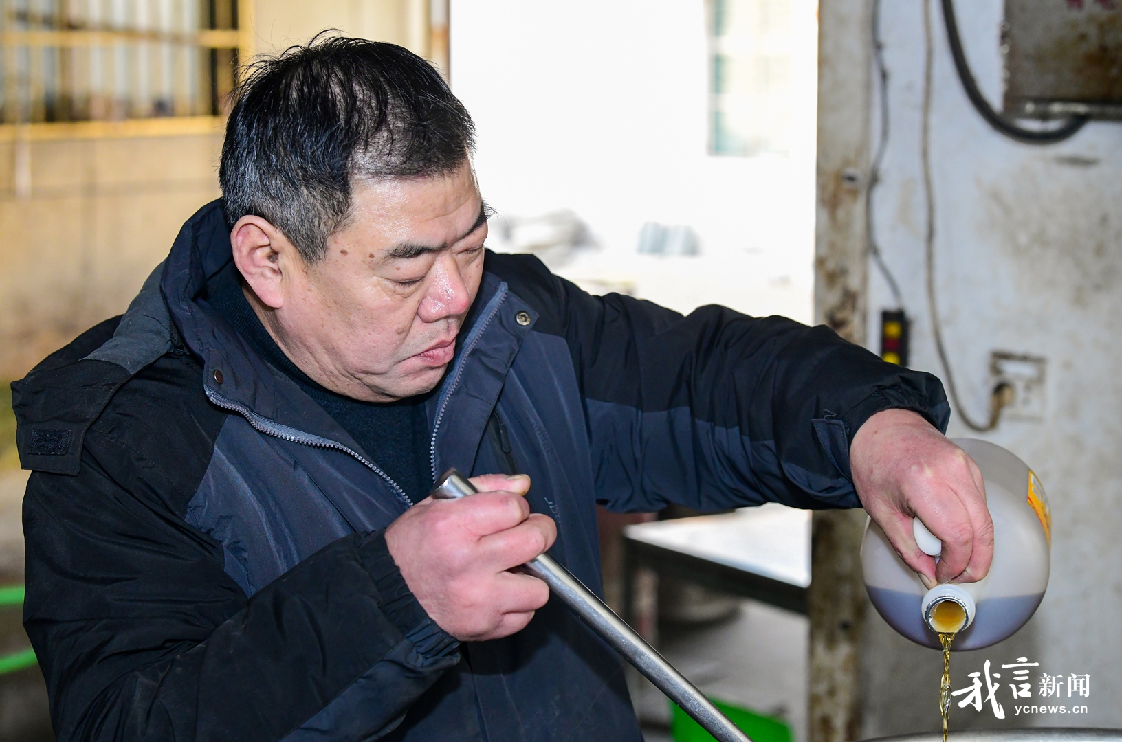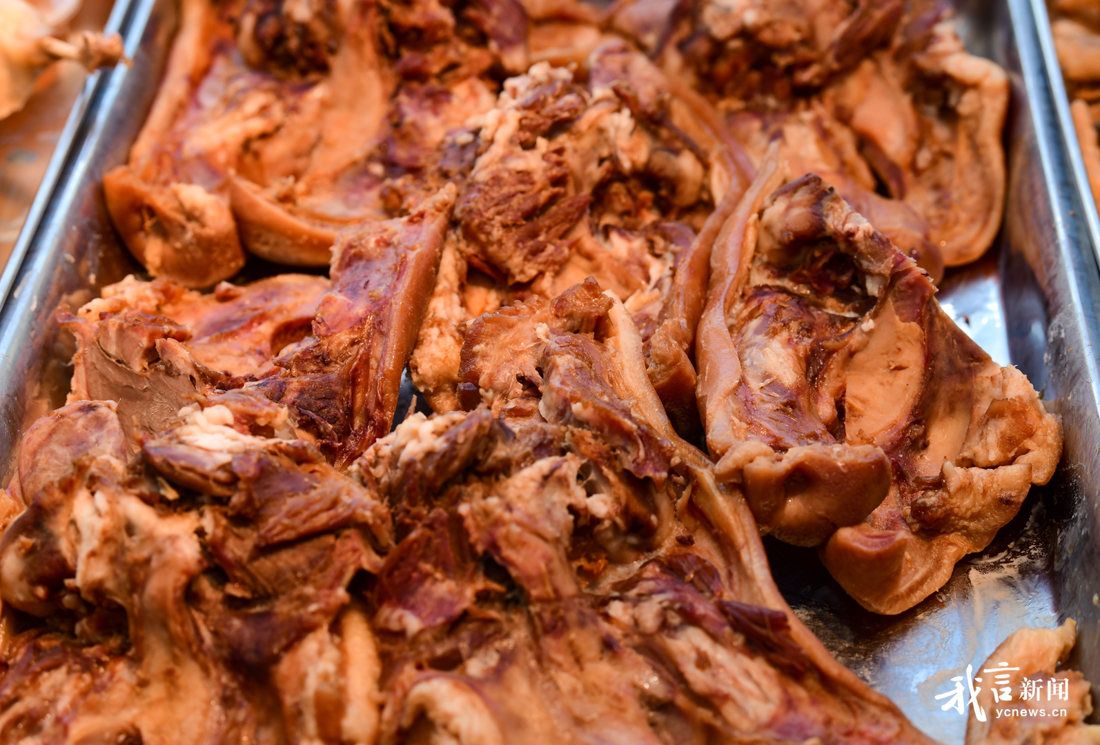 1月12日,在东台市新街镇卢三老卤店,“传统卤菜制作技艺 ”东台市级非遗传承人卢崇山正在卤制食材。