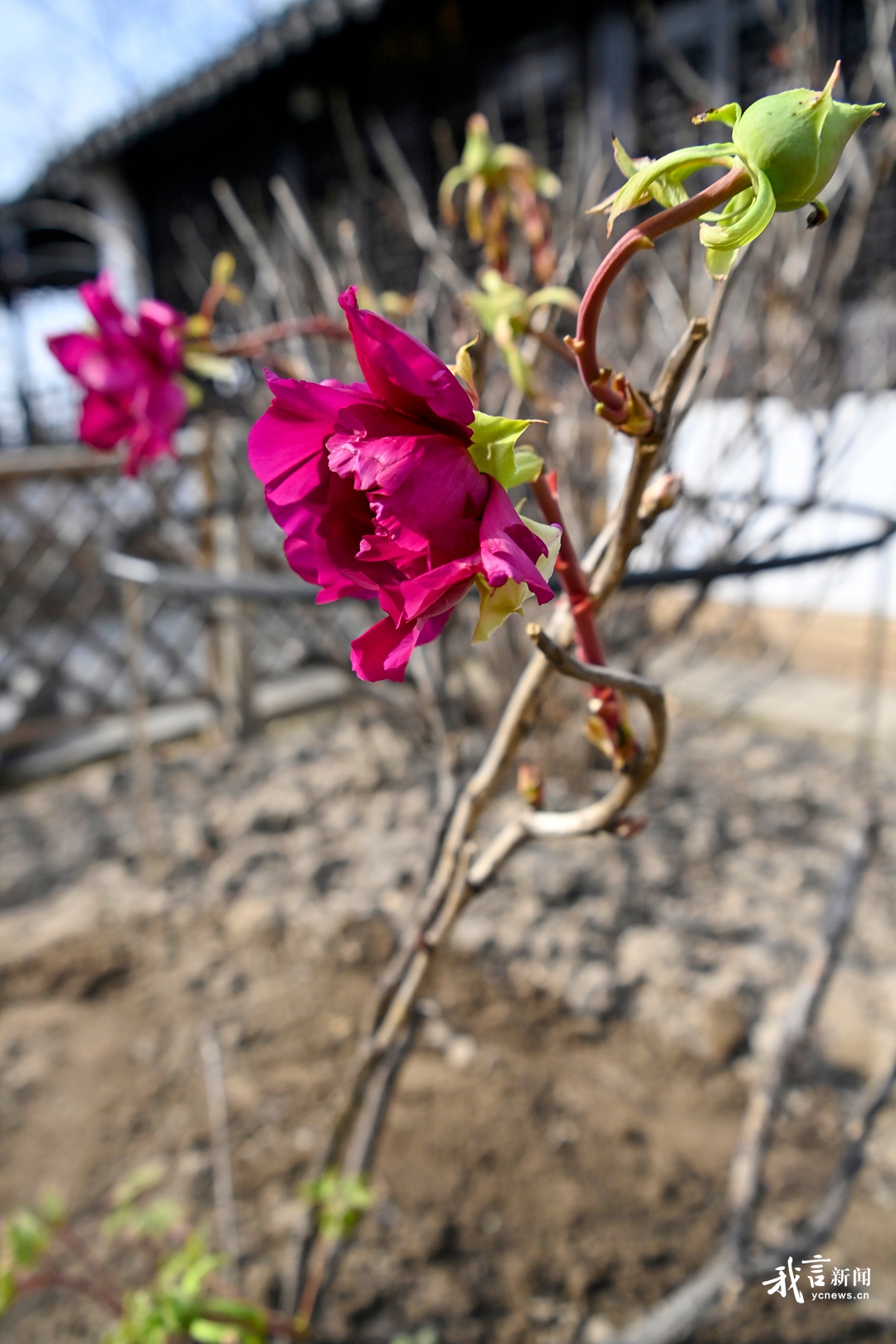 枯枝牡丹腊月里开花本身少见,连续腊月里开花更是令人称奇。