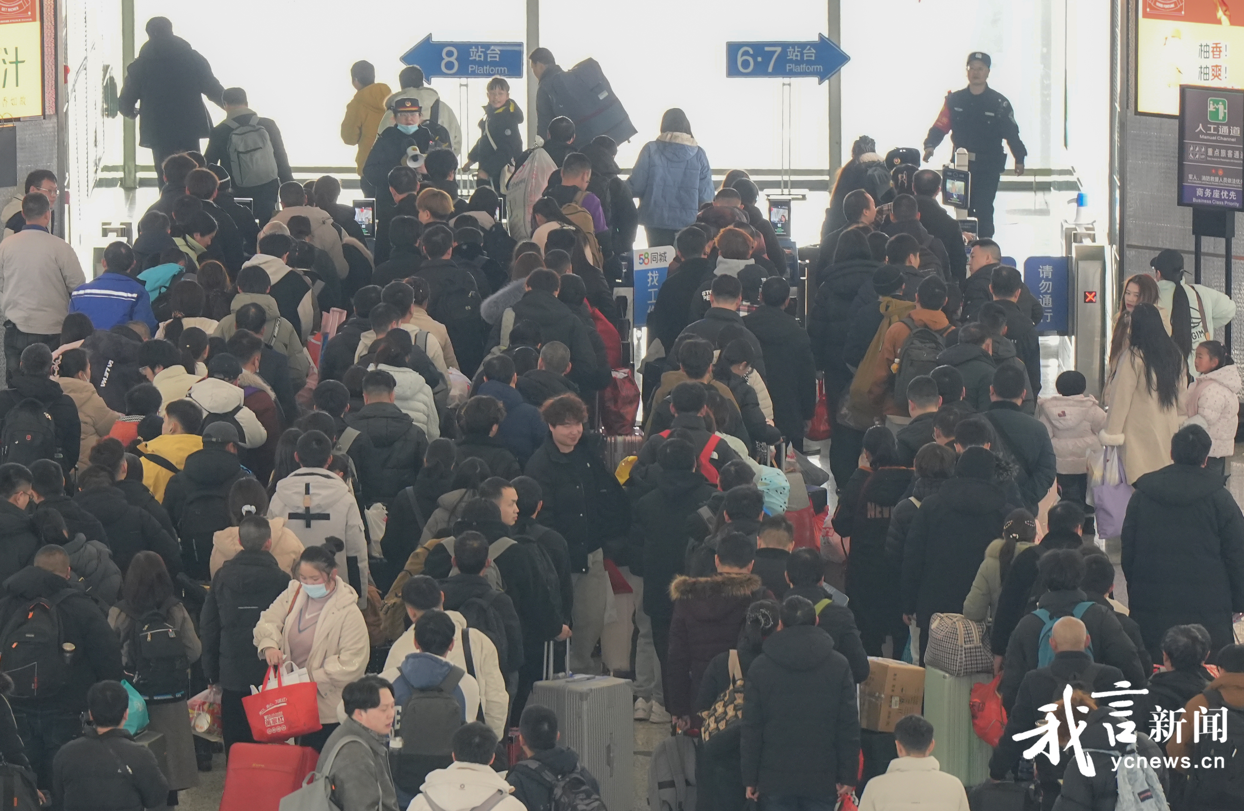 2月11日是腊月二十四,南方小年,盐城高铁站客流较平日大幅攀升,候车大厅、检票口挤满了背着大包小包、归心似箭的返乡乘客。站内秩序井然,工作人员与民警全力开展疏导工作。春运期间,盐城站增开40趟临客,开足所有安检、售票窗口,全力保障旅客顺畅出行。