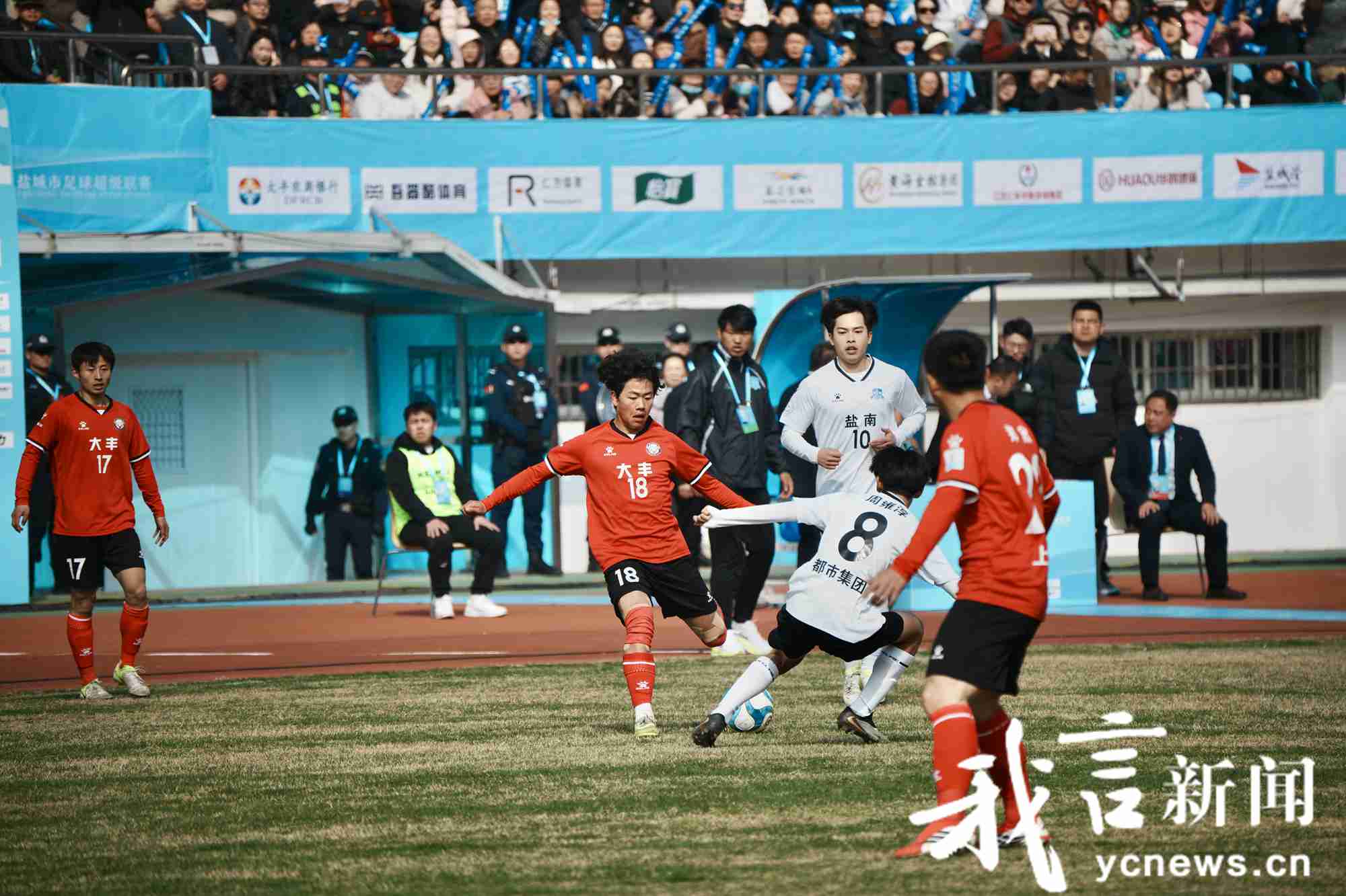 其中揭幕战之一的盐南队对阵大丰队,现场双方在大丰区奥体中心绿茵场展开激烈角逐,最终大丰队以2:1战胜盐南队,斩获联赛首胜。
