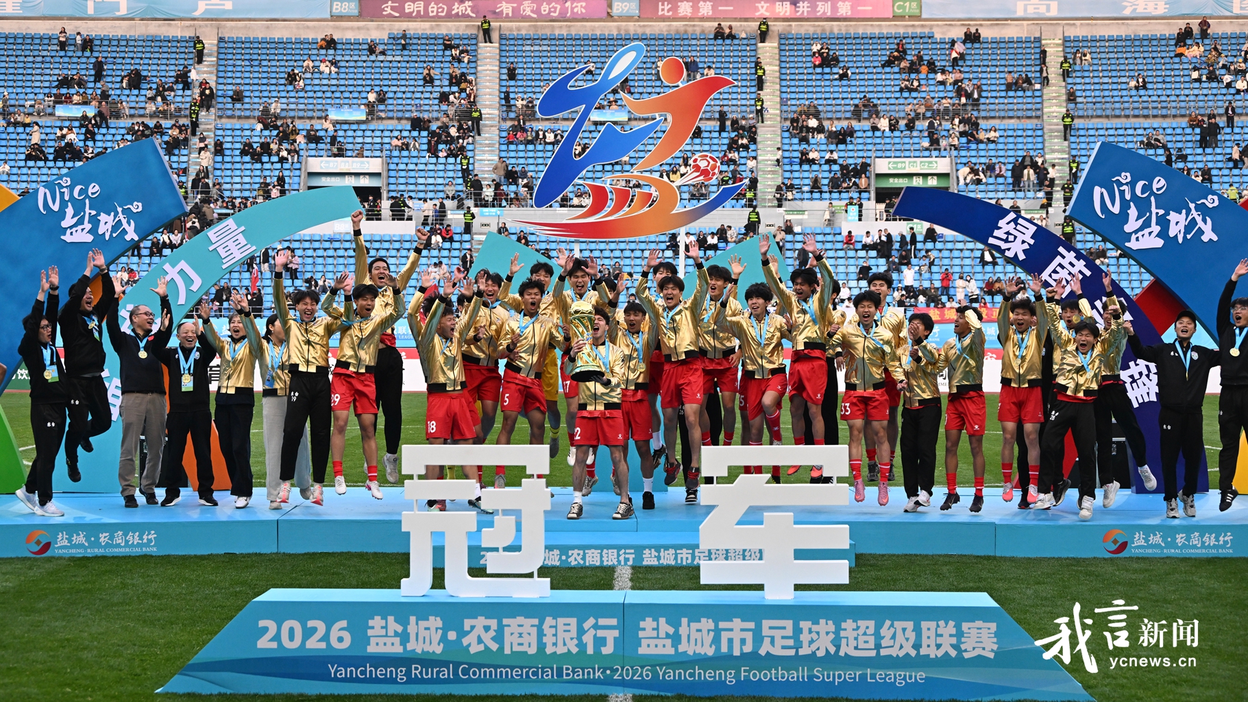 4月4日下午,2026年盐城市足球超级联赛决赛在盐城奥体中心体育场举行。在现场30105名观众的见证下,东台队以4:1战胜建湖队,夺得本届赛事冠军。