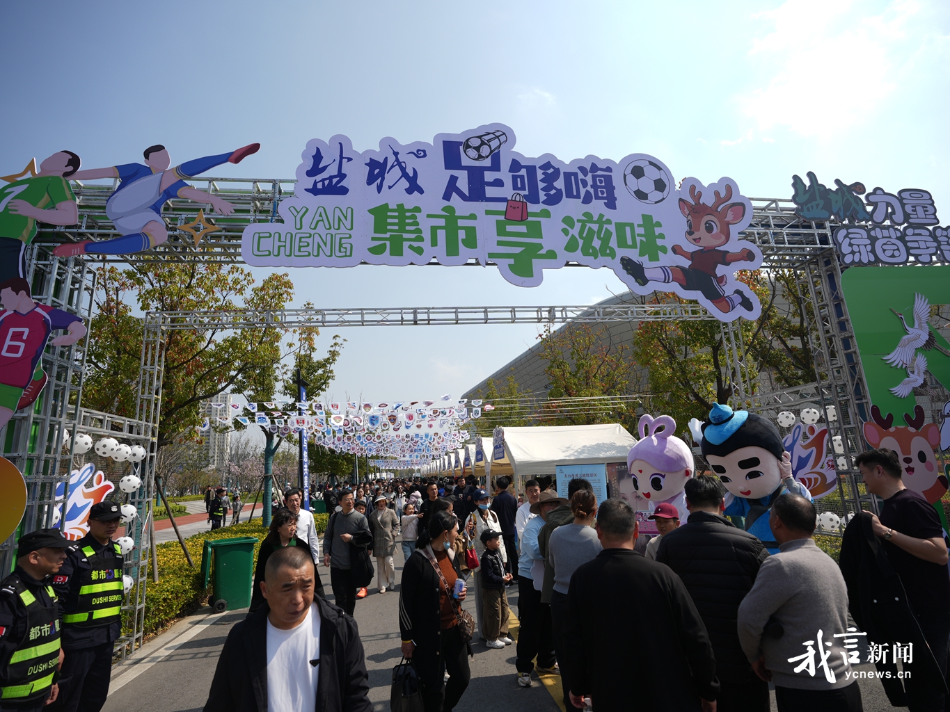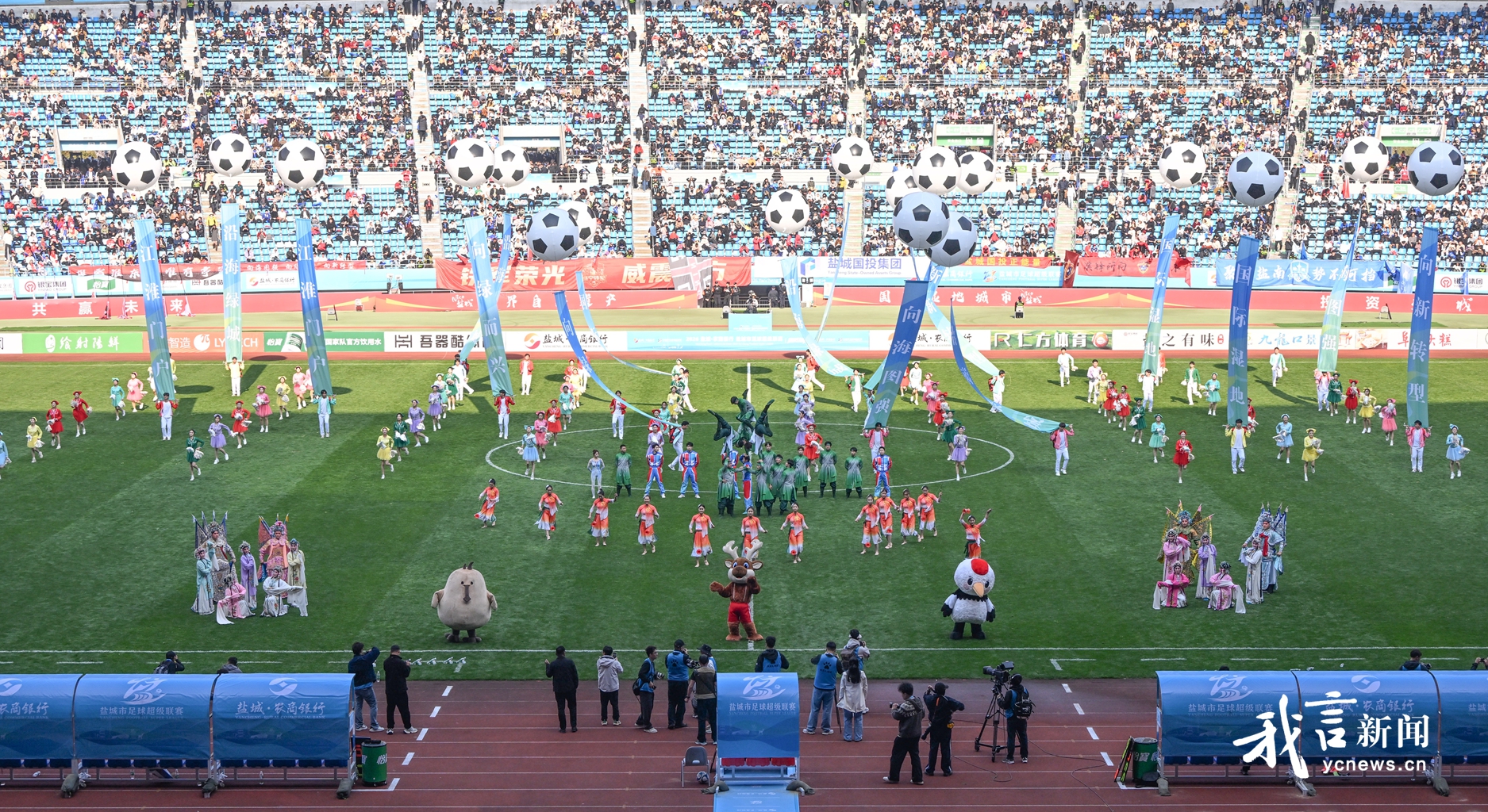 3月21日上午,盐城足球超级联赛大丰赛区规模盛大的巡游表演。严正东 摄