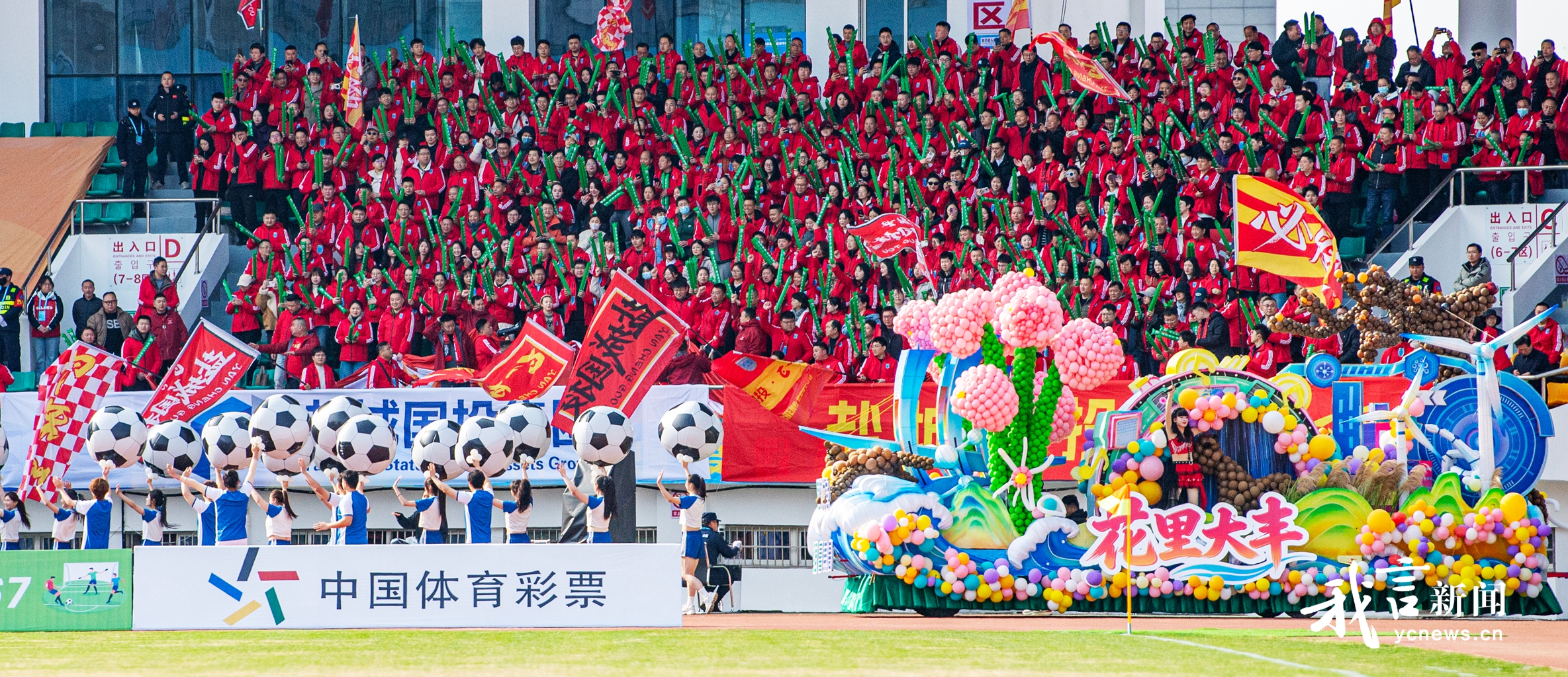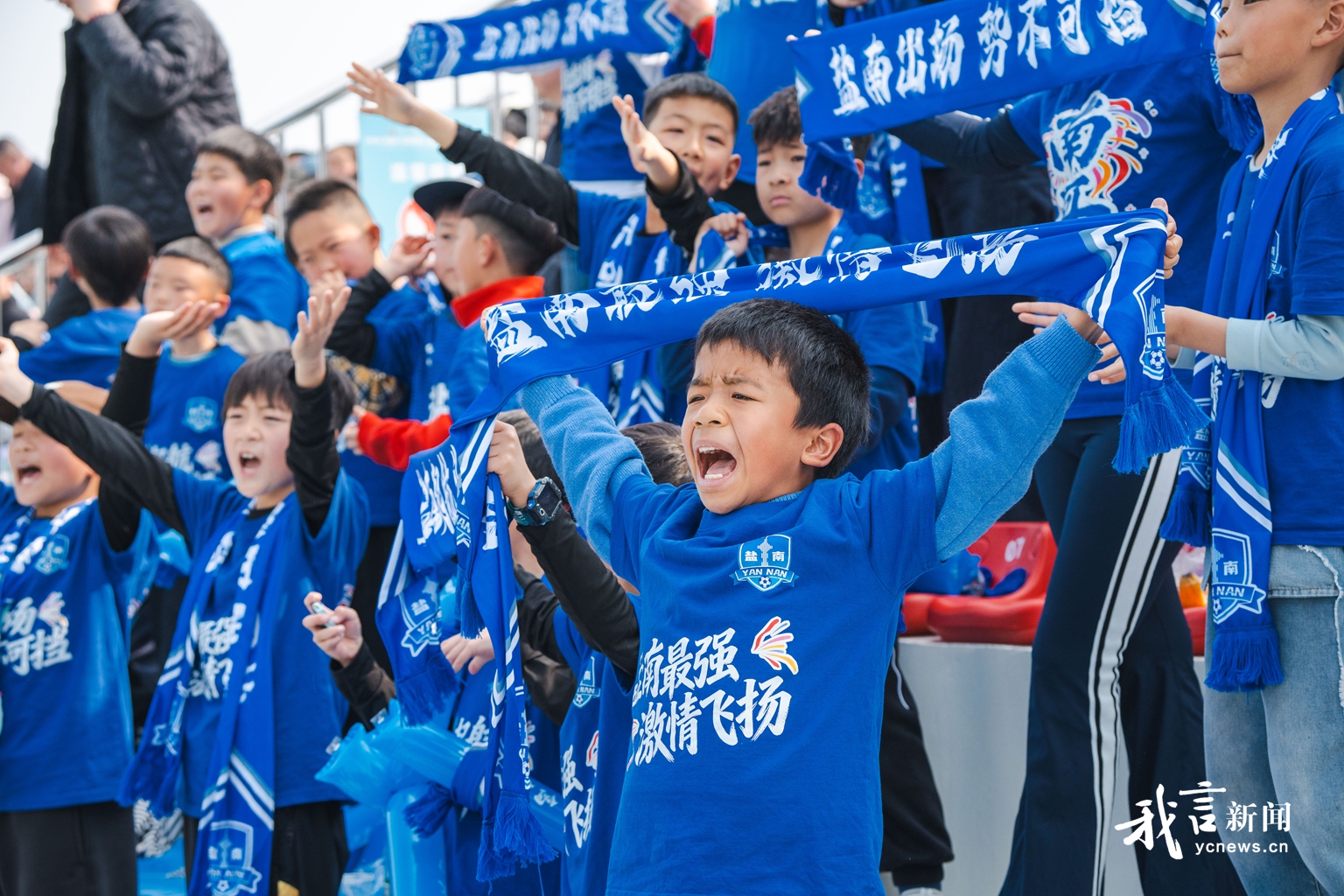 这场以“盐城力量·绿茵争锋”为主题的盛会,不仅有竞技的激情,更融合了体文旅商的独特魅力。赛场之上,球员们全力以赴、不负热爱;赛场之外,特色市集、文旅展演相映成趣。图为球迷为闯入决赛的两支球队加油。 杨毅 摄
