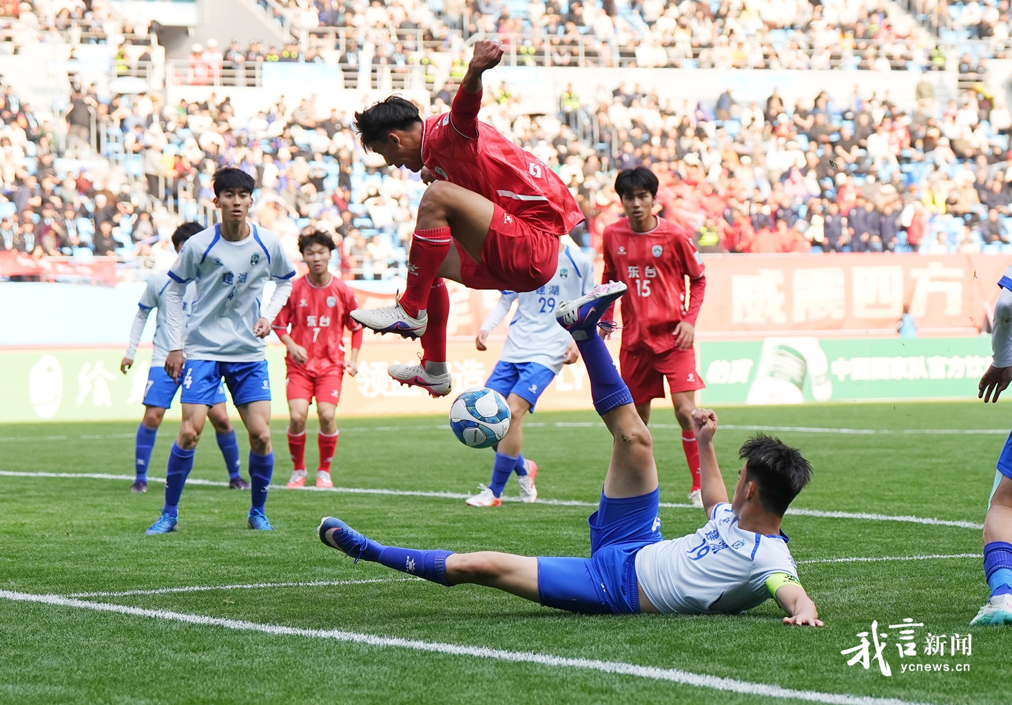 4月4日下午,决赛比赛现场,双方球员积极拼抢。周晨阳 摄
