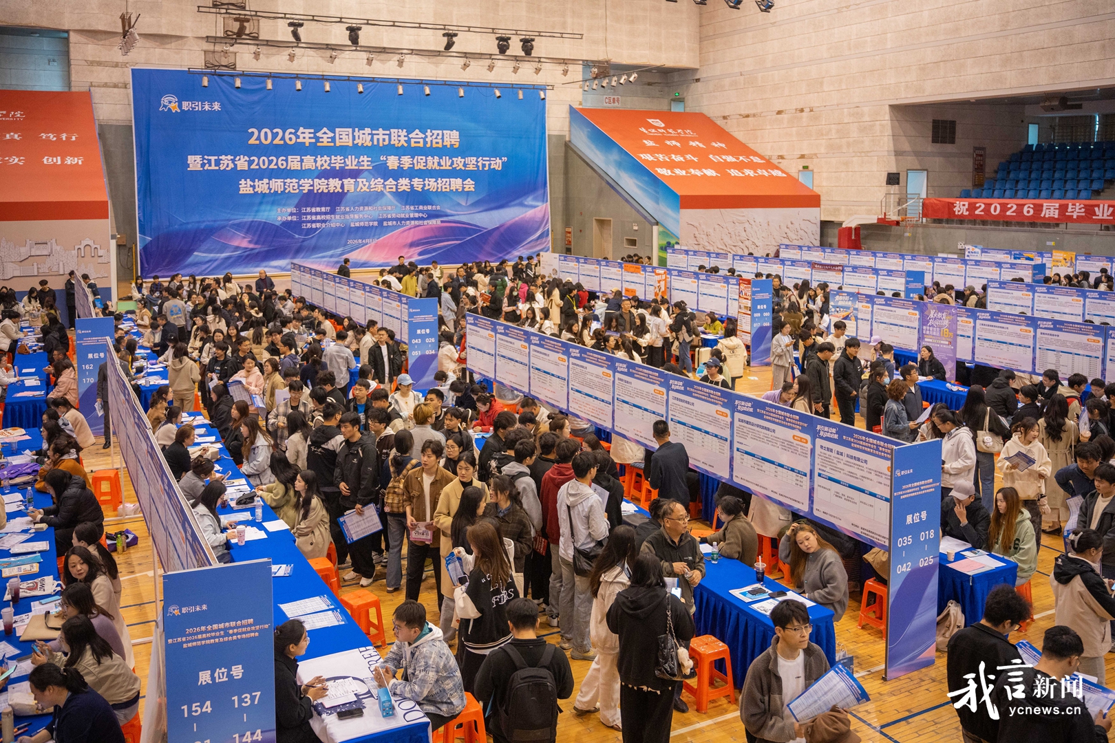 4月8日,江苏省2026届高校毕业生“春季促就业攻坚行动”暨盐城师范学院教育及综合类专场招聘会在新长校区圆满举行。