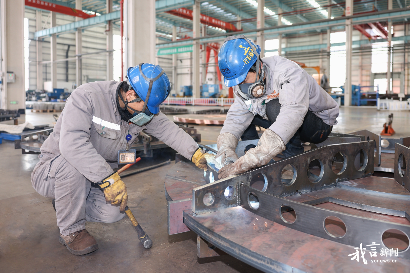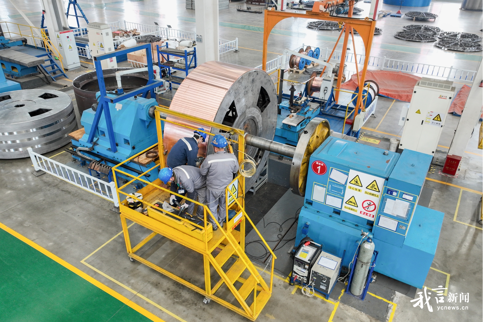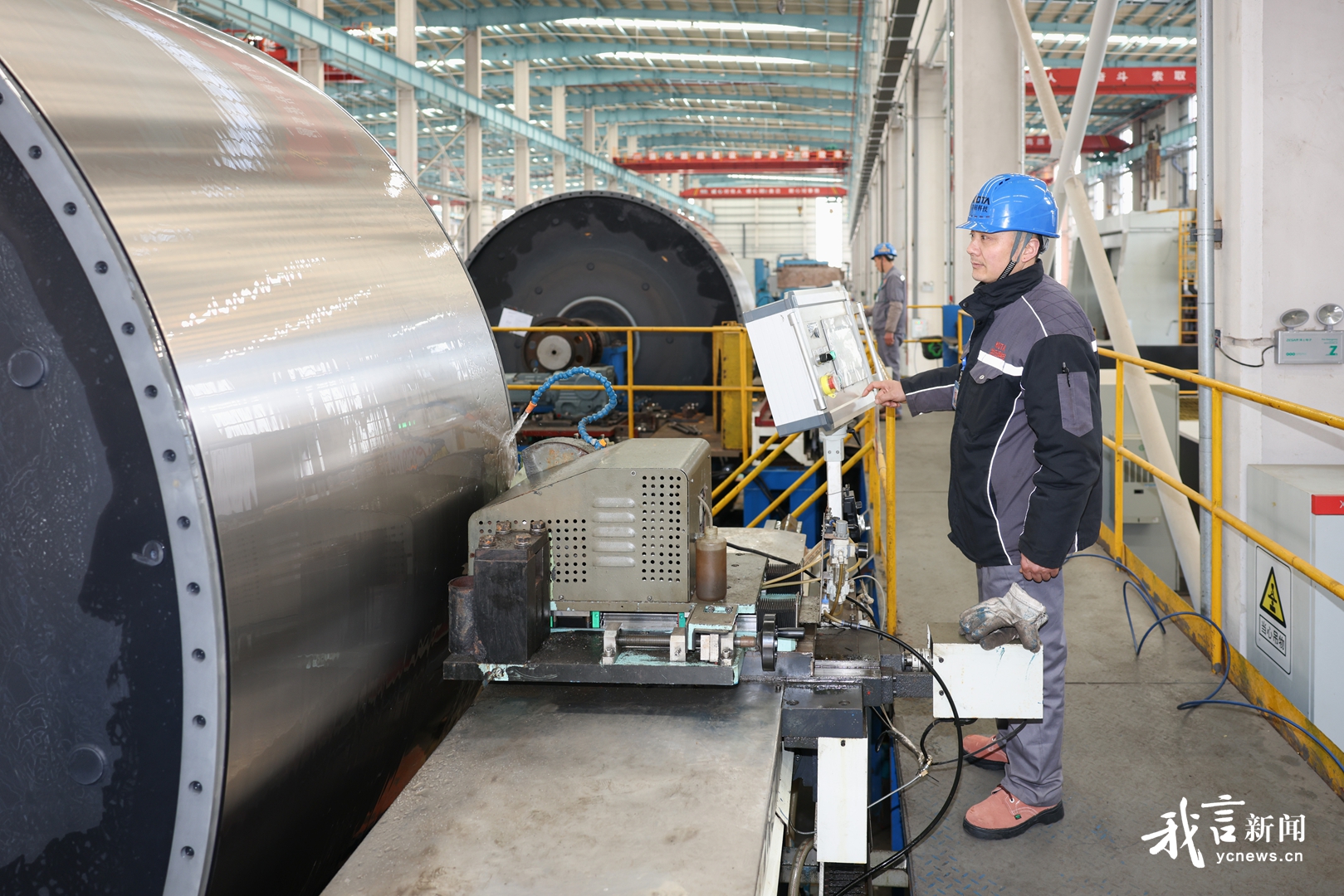 4月5日,江苏洪田科技股份有限公司的阴极辊生产车间机器转动,员工正在抓紧生产新能源锂电铜箔核心装备。