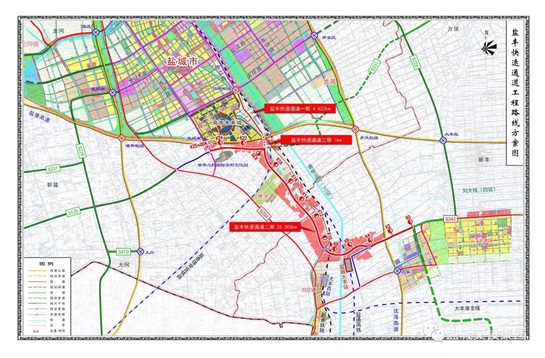 盐丰快速通道起于范公路高架伍佑枢纽,止于盐城高铁南站,全长约30.6公里,总投资约72.9亿元,分三期实施。