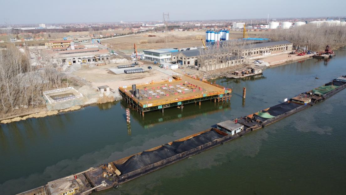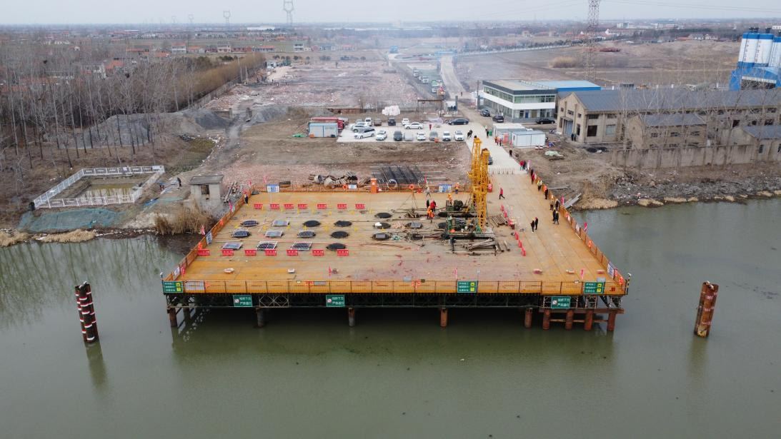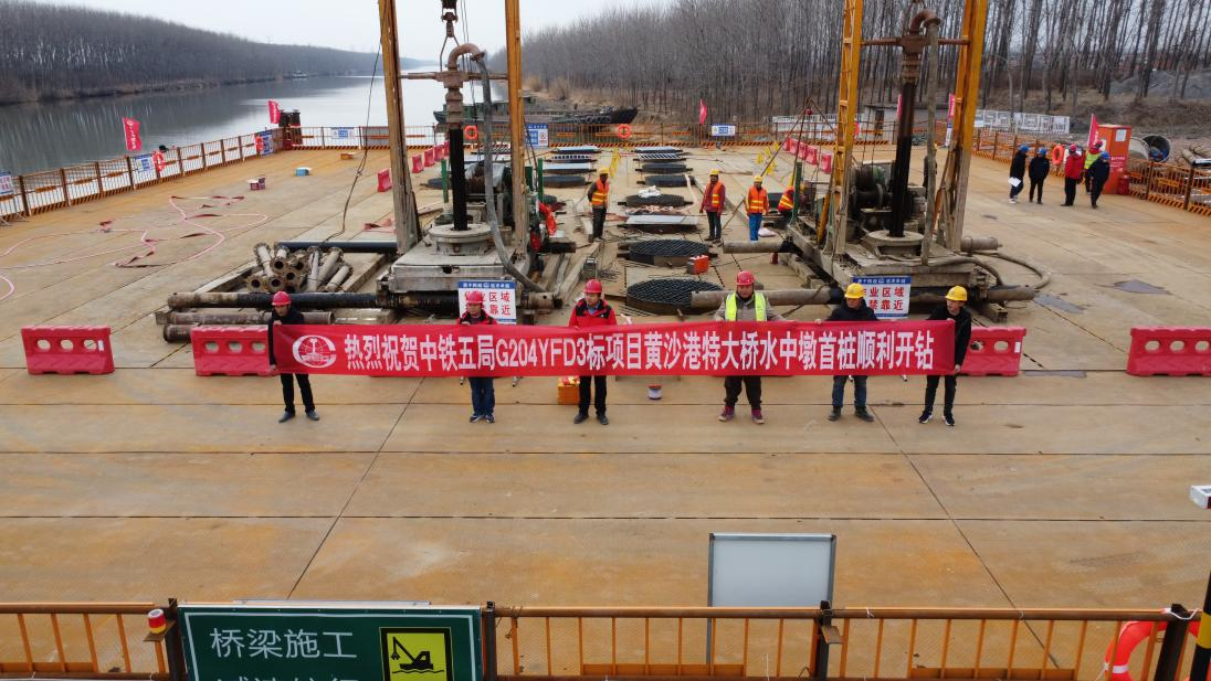 1月14日15时28分,一阵喜庆的鞭炮声响彻黄沙港运河上,由中铁五局承建的盐阜快速通道黄沙港特大桥水中墩首桩顺利开钻,标志着黄沙港特大桥控制性工程水中墩施工拉开序幕。