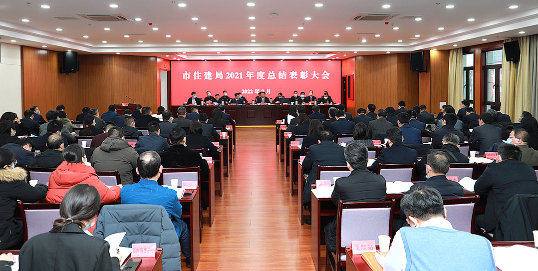 律回春晖渐,万象始更新。2月7日下午,市住房和城乡建设局 2021 年度总结表彰大会举行,深入贯彻全市综合考核表彰大会精神,全面总结住建系统去年工作,表扬激励成绩突出的先进单位和先进个人,科学部署今年工作任务,调动全局上下进一步统一思想、凝心聚力,勇立潮头、奋力争先,全力推动全市住房和城乡建设高质量发展取得更大的成绩。局党委书记、局长张宏春出席会议并讲话。