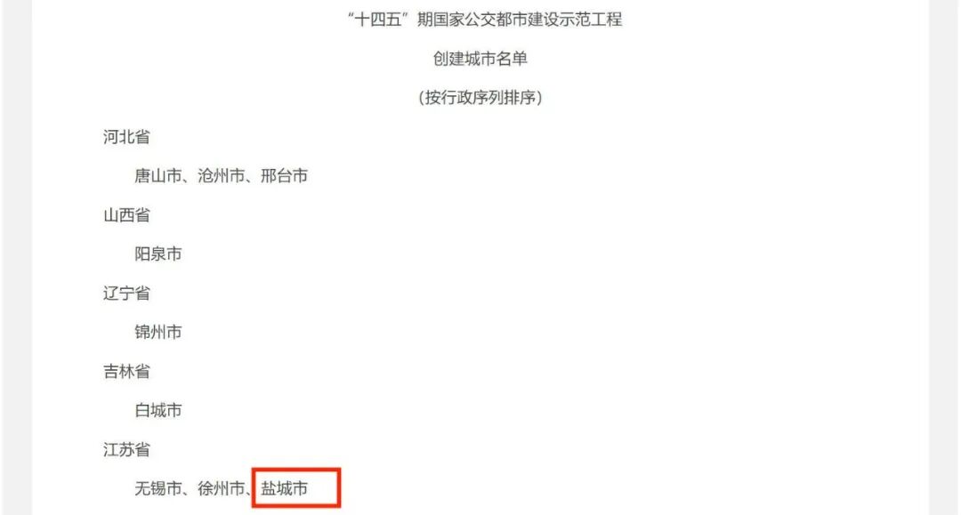 全国共30个城市上榜,盐城成功入选。据了解,2022年度,市区新增150辆纯电动公交车,清洁能源公交车占比突破92%,助力盐城创成全国绿色出行达标城市。盐城BRT智能交通项目成为盐城唯一入选2022年度全省绿色交通主题性项目。