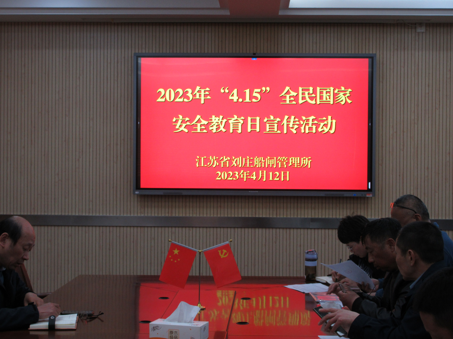 在第八个全民国家安全教育日来临之际,为切实增强盐城港航刘庄船闸干部职工的国家安全意识,进一步提高对国家安全重要性的认识,引导干部职工主动关心国家安全,自觉维护国家利益,推动国家安全宣传教育工作走深走实,4月12日,盐城港航刘庄船闸开展以“贯彻总体国家安全观,增强全民国家安全意识和素养,夯实以新安全格局保障新发展格局的社会基础”为主题的“4·15全民国家安全教育日”普法宣传活动。