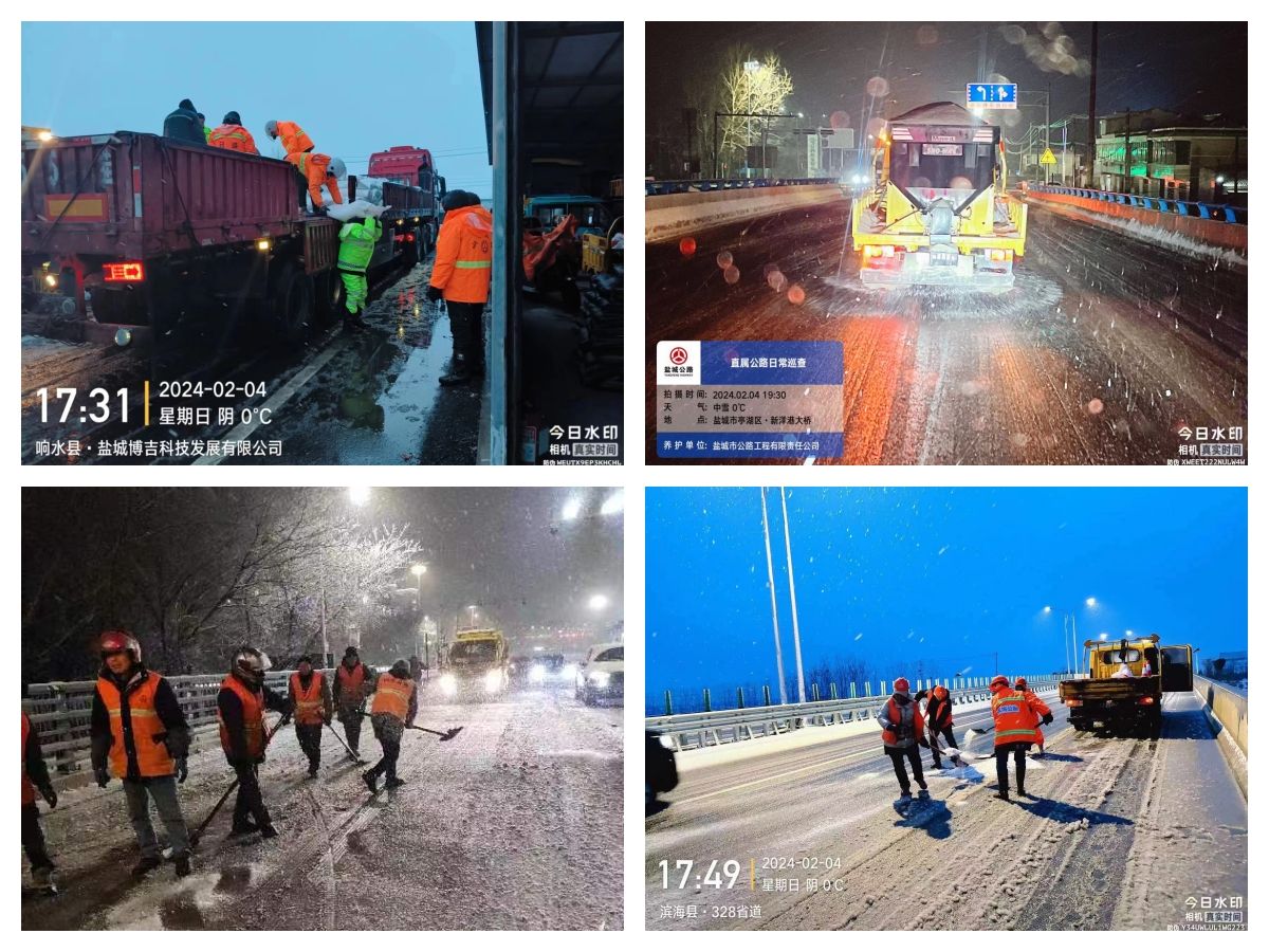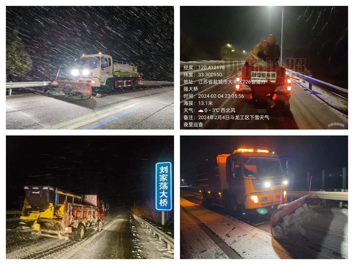 为保障公路安全通行,我市公路部门立即启动应急预案,各养护工区坚持“以雪为令”,各地养护应急人员全部到岗到位,第一时间上路巡查,实地查看雪情,并对易结冰路段撒布融雪剂,人员、机械全上阵,不间断除雪作业,最大程度降低降雪对公路交通带来的不利影响。无数公路人顶风冒雪,彻夜未眠,坚守在保通保畅的最前线。他们奋战一夜,只为保障公路积雪积冰尽快消除,为人民群众出行安全、通畅保驾护航。