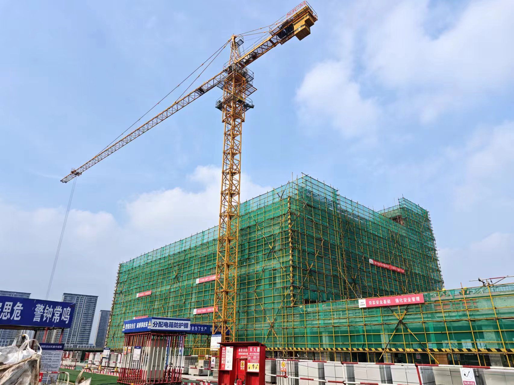 “目前工程已全部封顶,进入砌筑墙体和二次结构施工。目前,我们在根据进度合理组织后期装饰工种培训进场,在确保安全质量前提下不间断施工,按计划工期完成”班组施工负责人孙同峰说。