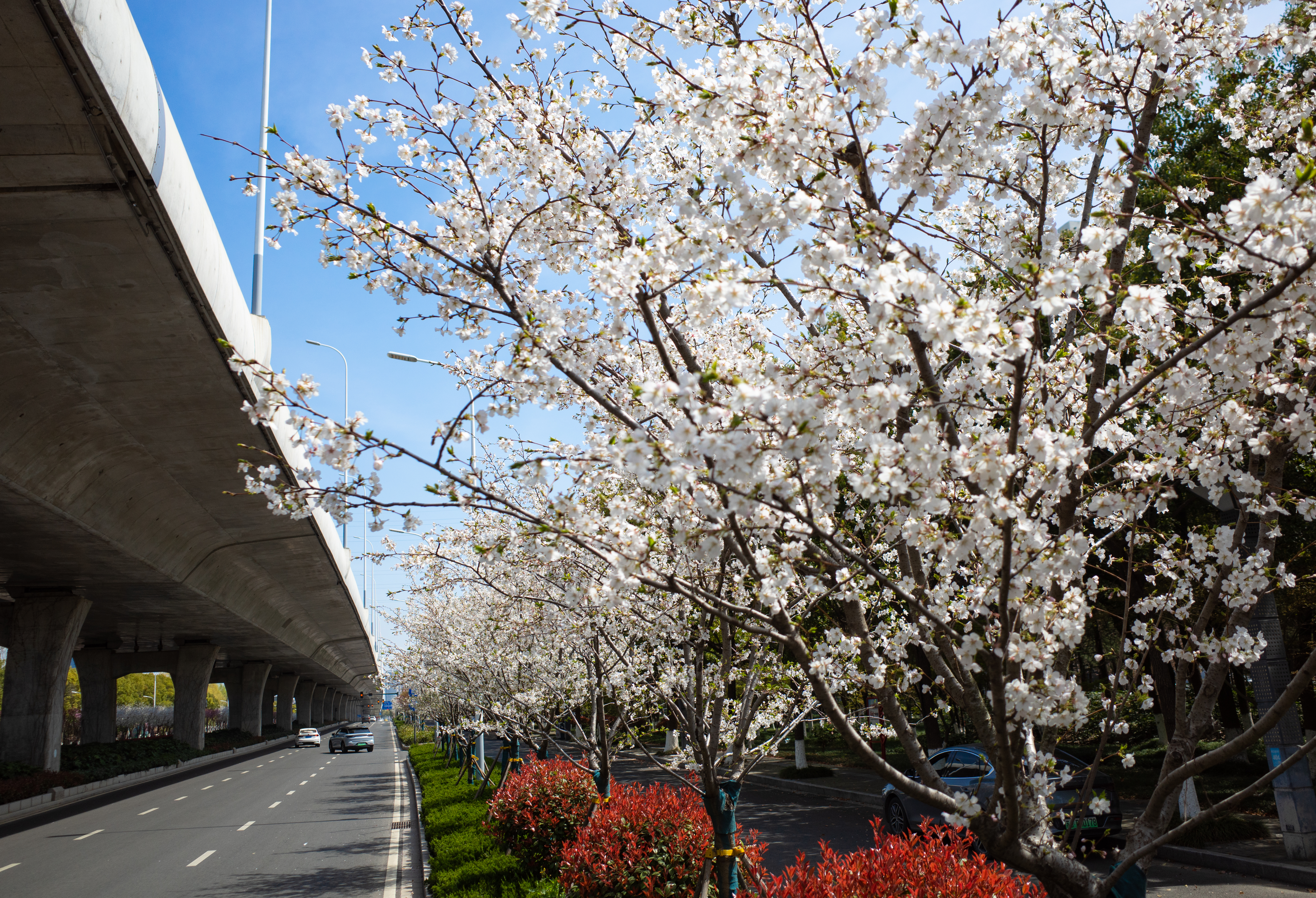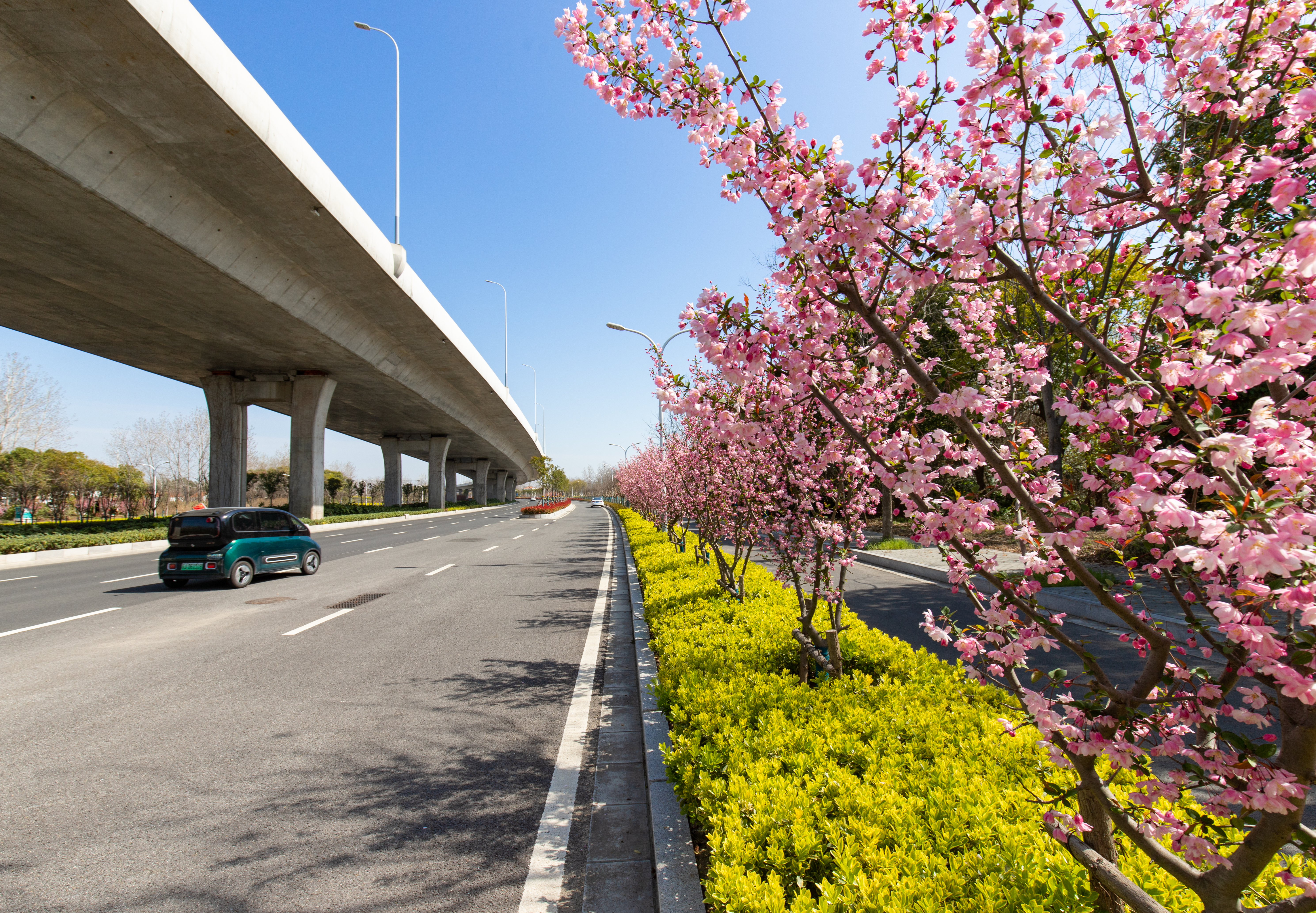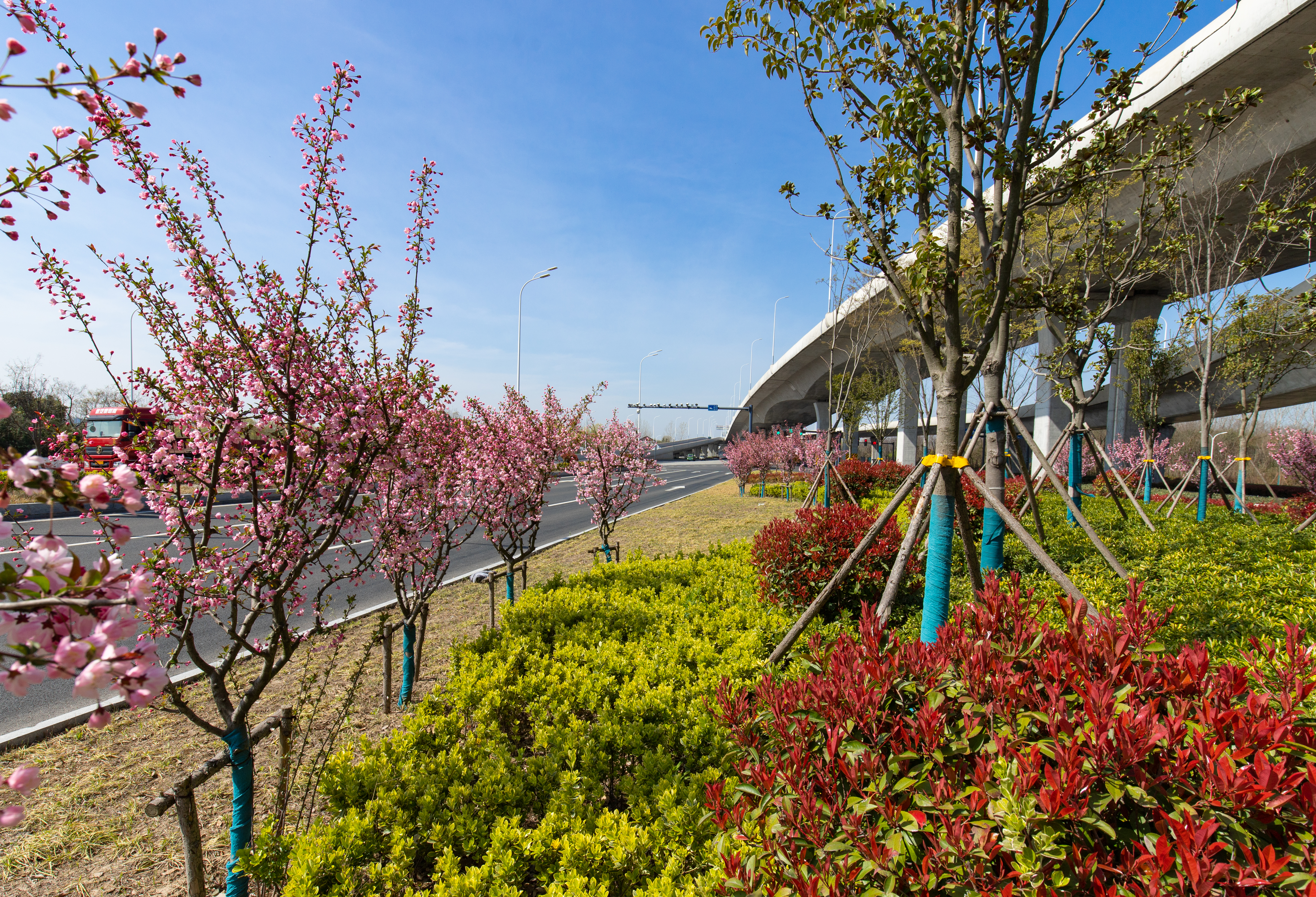 高架三期沿线绿化范围包括青年路东延线、东环路、黄海路东延(含机场连接线)和世纪大道高架建设段,分4个标段建设,合同总价约8000万元,项目于2020年4月29日开工,2022年1月19日交工验收。至今年1月,项目养护期满,按照招标文件和合同约定,已符合竣工验收条件。