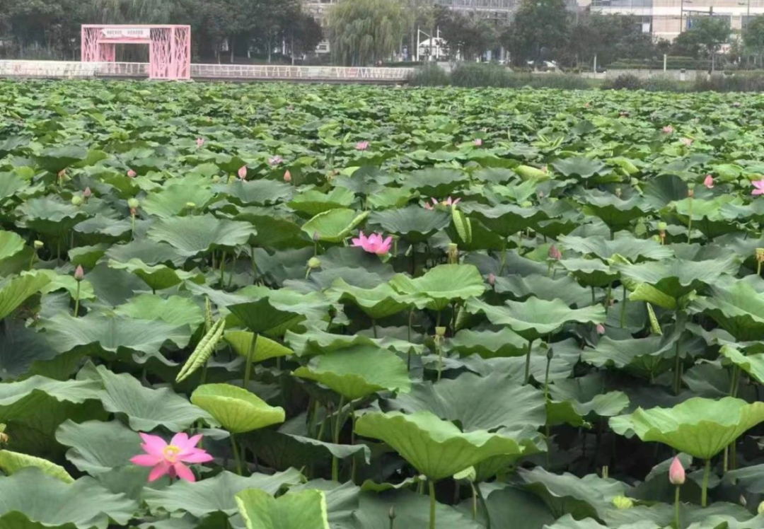 园林管理建议:荷花生长迅速,池中的水草也容易过度生长,需定期修剪枯黄的叶子,剪除残败花朵,清理杂草与浮萍,以保持水质清澈。