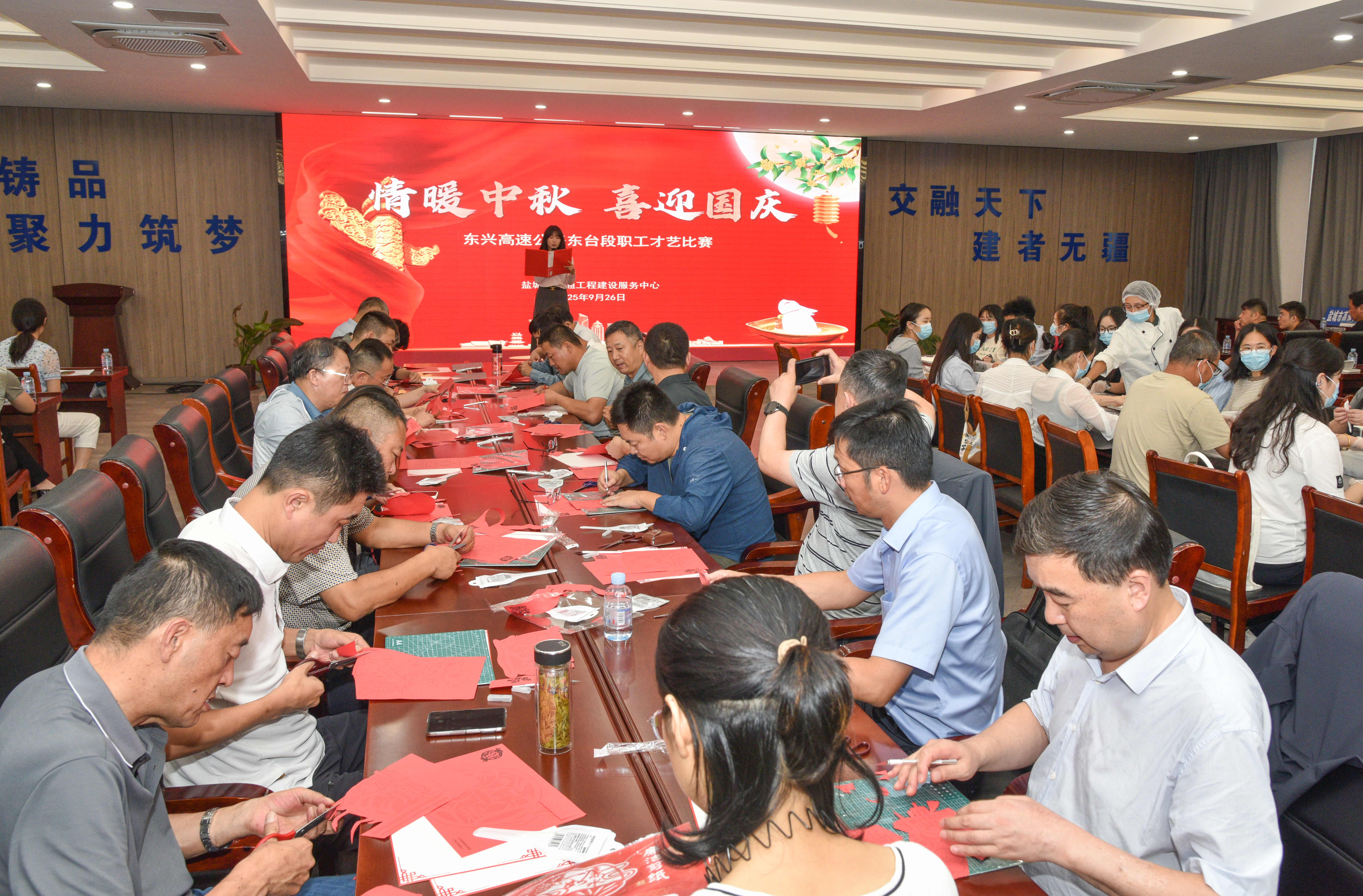 9月26日,东兴高速公路东台段开展“情暖中秋,别样团圆”职工才艺比赛活动,来自东兴高速公路各参建单位的100余名职工代表与市交通工程建设服务中心的同志欢聚一堂,做一枚香甜的月饼,寄一缕思乡的情怀,剪一幅清廉的图画,表一份“坚守者”的心愿,亮一技交通人的才艺,诵一首祖国的赞歌。
